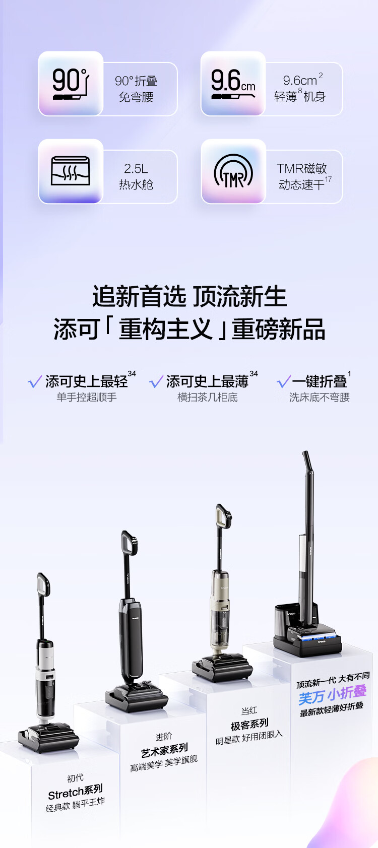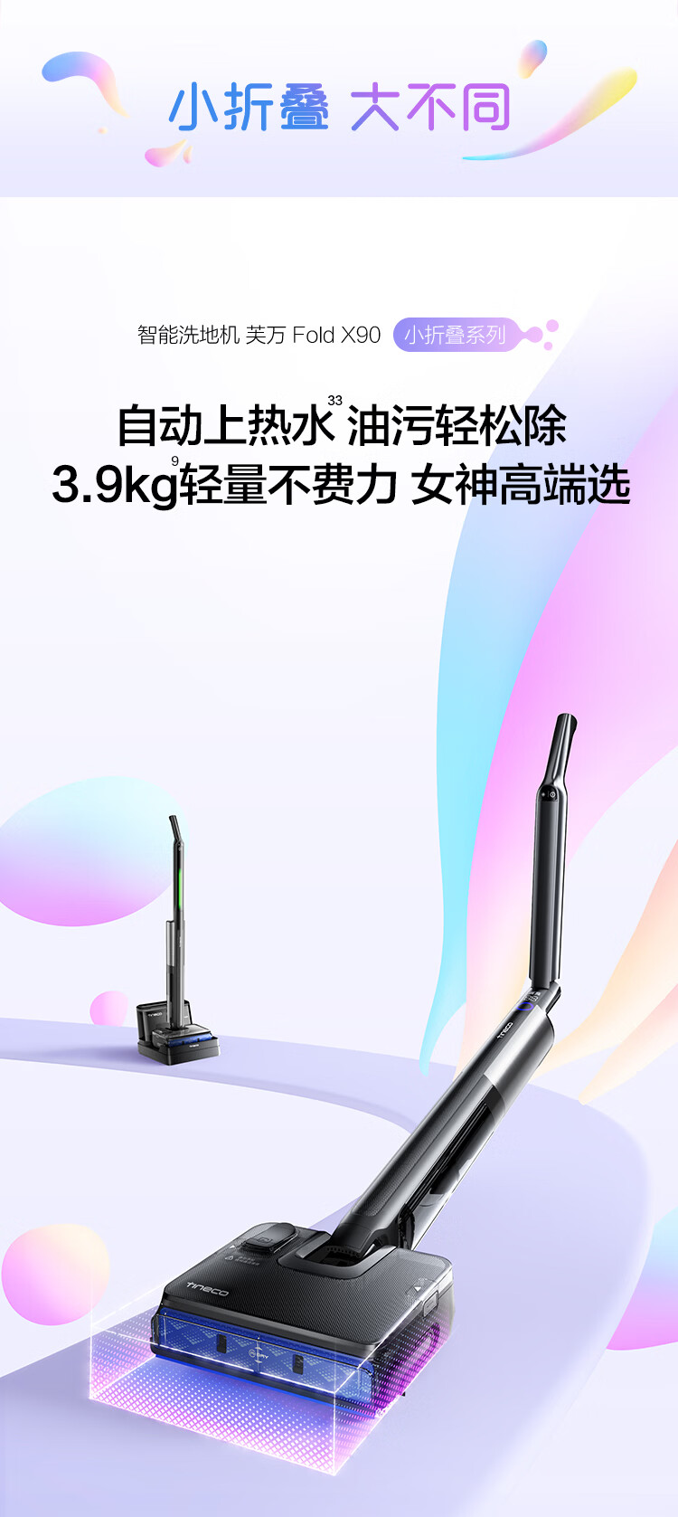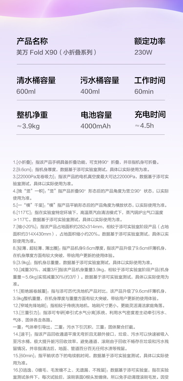 添可洗地机小折叠系列芙万 Fold X90【 90°折叠臂 2.5L热水舱 自动上热水 】家用无线吸拖一体机 芙万 Fold X90