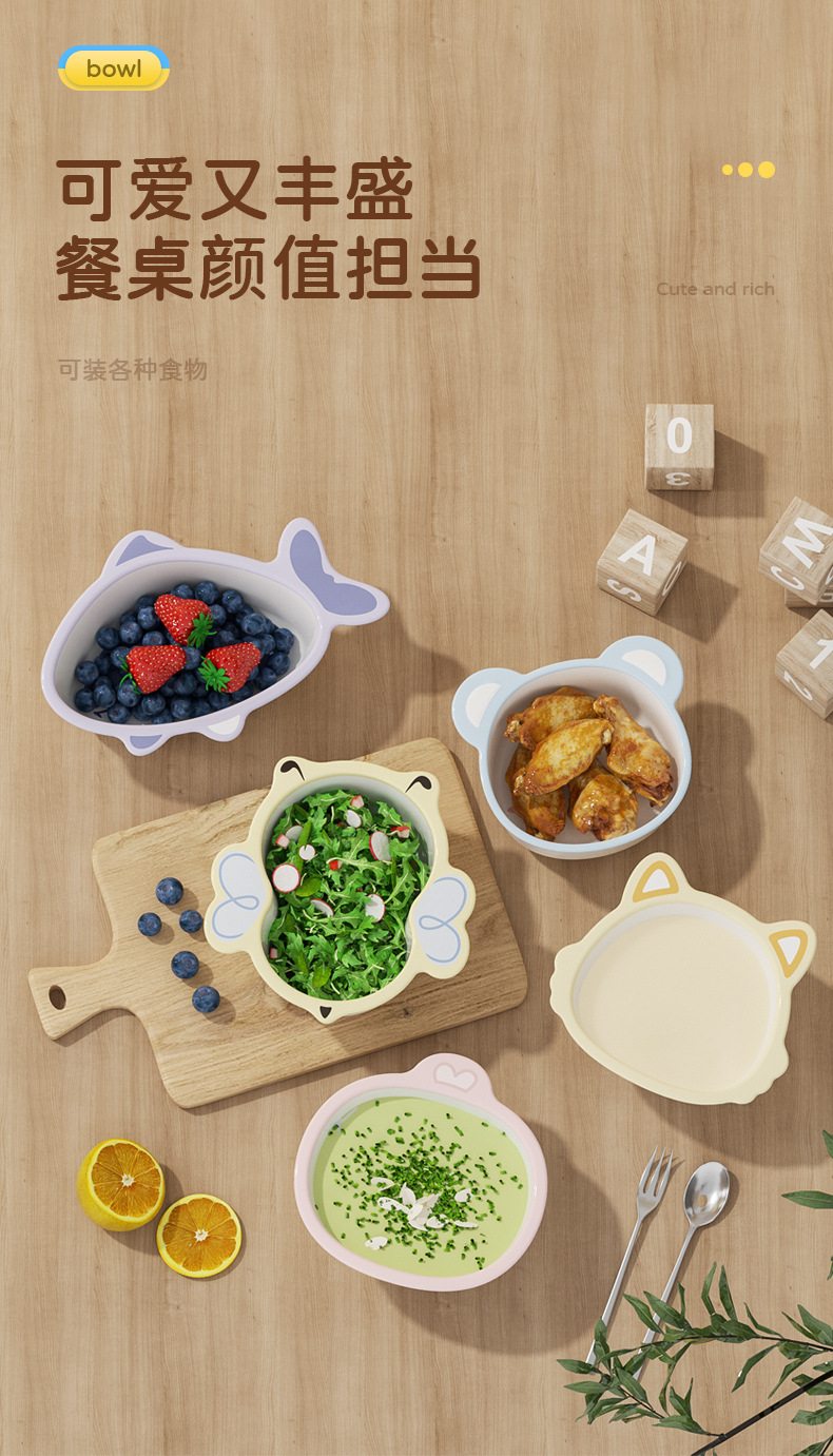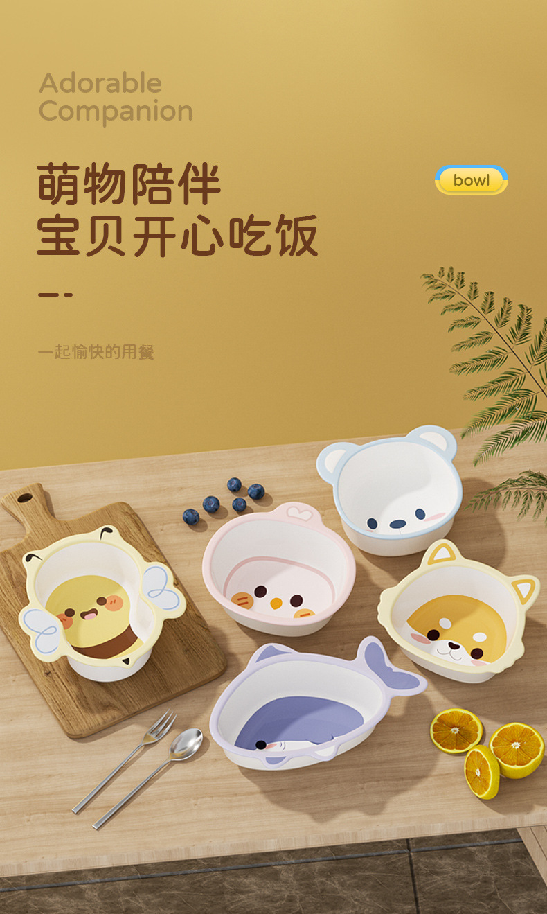 【耐摔耐用!健康材质】家用儿童餐具ins风宝宝碗可爱高颜值母婴用品专用辅食碗卡通勺子。xa