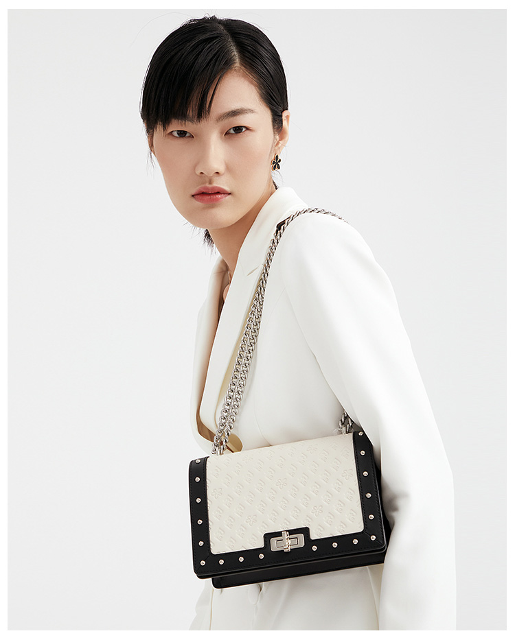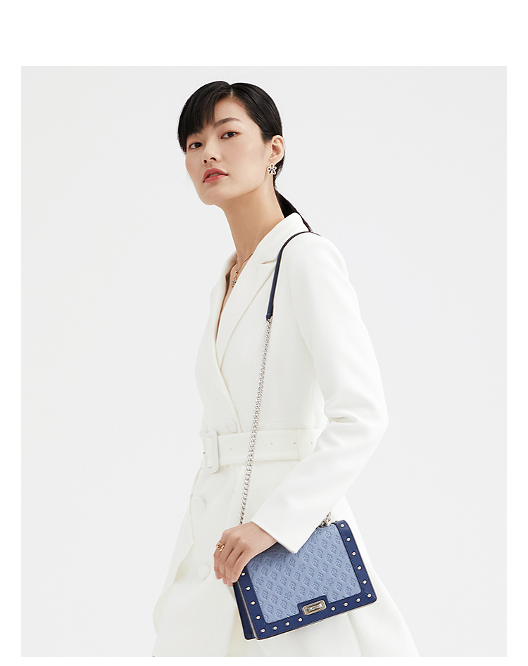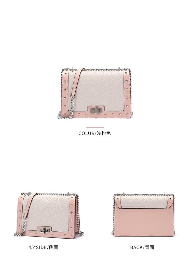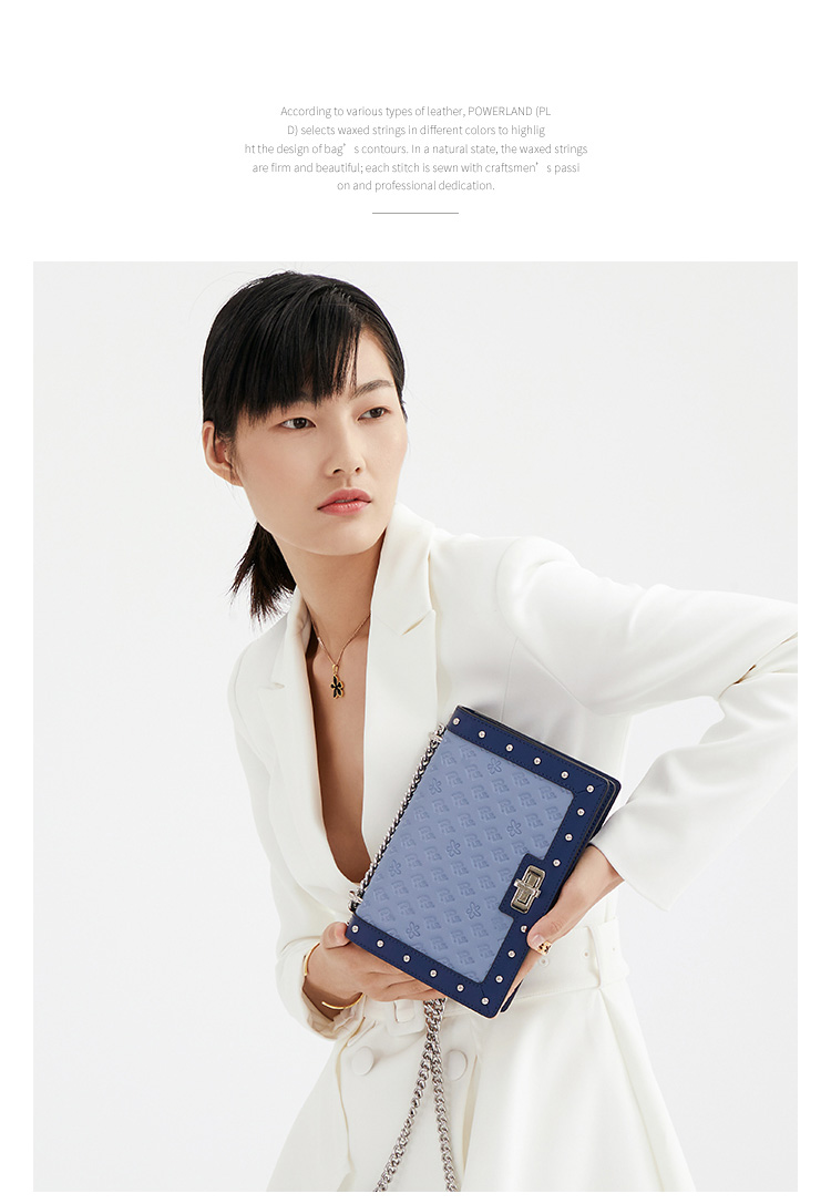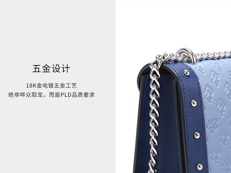 保兰德PLD东方雅奢45度老花压纹头层牛皮链条包单肩包斜挎包通勤必备女包