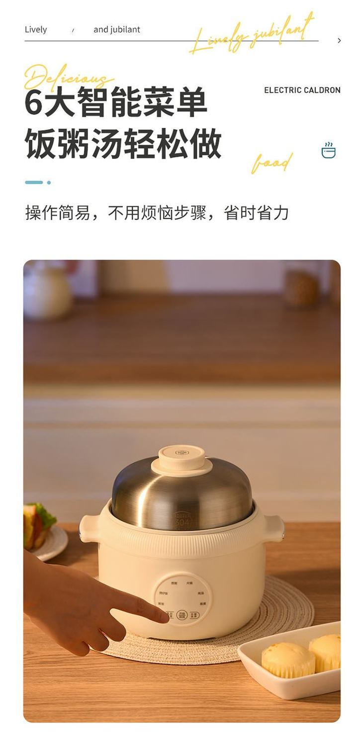 6大智能预设菜单 ✅煮米饭 ✅煲仔饭 ✅煲粥 ✅火锅 ✅炖汤 ✅蒸煮 傻瓜式一键触控操作 不仅能煮出家“香”饭 还能料理各种美食 小小一煲就能照料好你的一日三餐