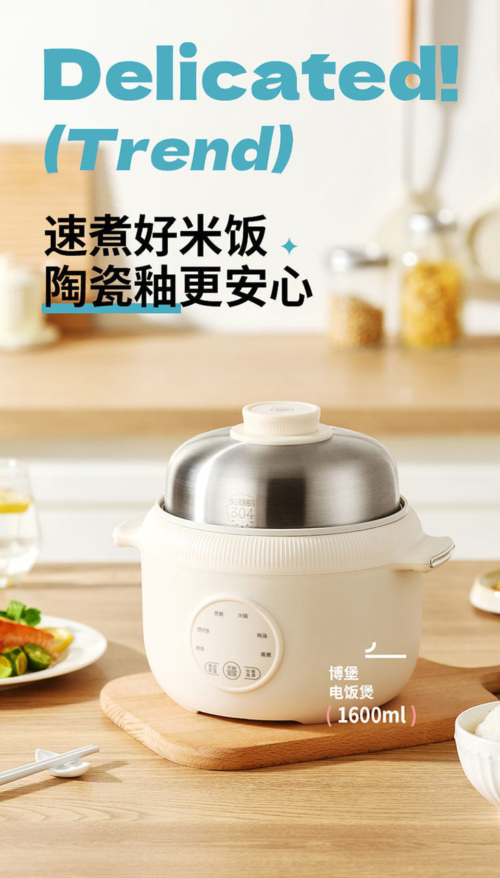 德国百年大牌德世朗 旗下“闯中”的子品牌博堡放大招👏🏼 史无前例的新品上市促销 【1.6L迷你多功能电饭煲】🍚 无套路❗直降一百❗ 淘宝199,今天开团99~💵 不仅有颜值 煮饭实力杠杠的💯 🔻汤、饭、粥一键烹煮 🔻6大菜单随心烹饪 🔻24小时超长预约 一锅能抵好几个锅用❗ 好看程度比得上bruno 实用程度甩同价位电饭煲几条街 用一顿饭好好迎接美好的春光吧~