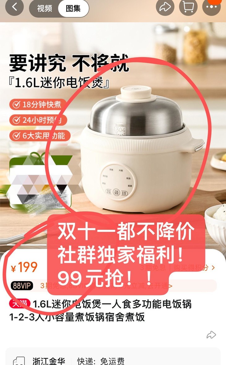 🇩🇪德国百年大牌-德世朗旗下博堡 全球知名 价格必须立在那里 大的电商平台从不打折❗ 品牌放出1000个库存 偷偷来找我上新品福利 TB上连双十一都没降价 💥一直都是199的标价 再对比市面上同样电饭锅、小煮锅 一个都要500起步 💰️今天咱只要99元就到手⁉️ 真的太划算了! 相当于半买半送😻