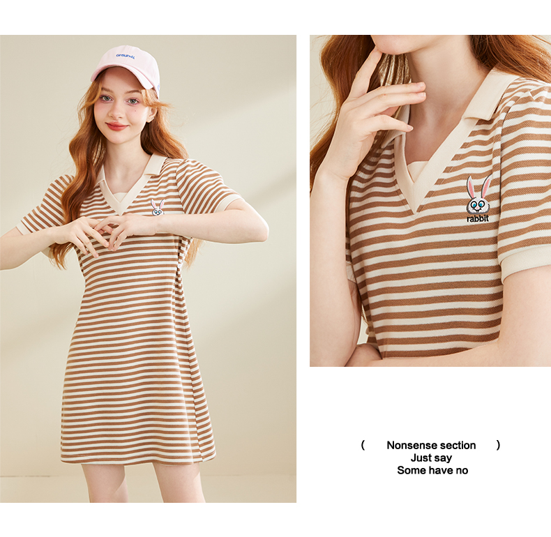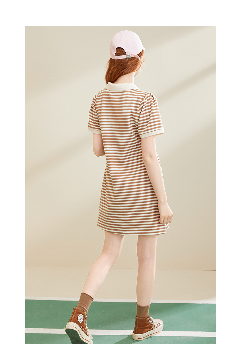 MC2法式V领条纹T恤裙2023夏新款收腰显瘦A字裙小个子气质连衣裙