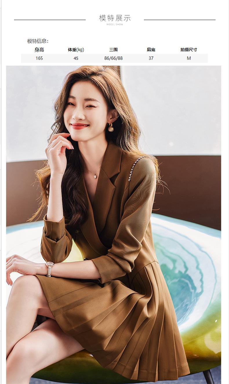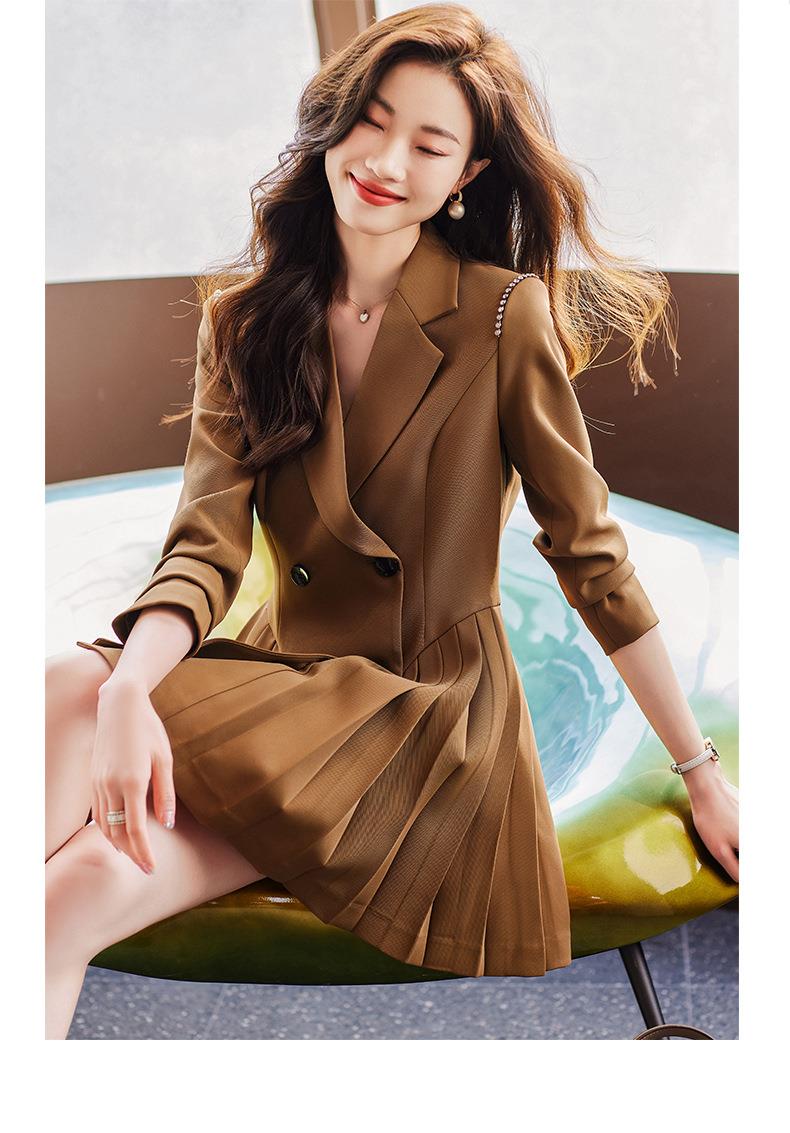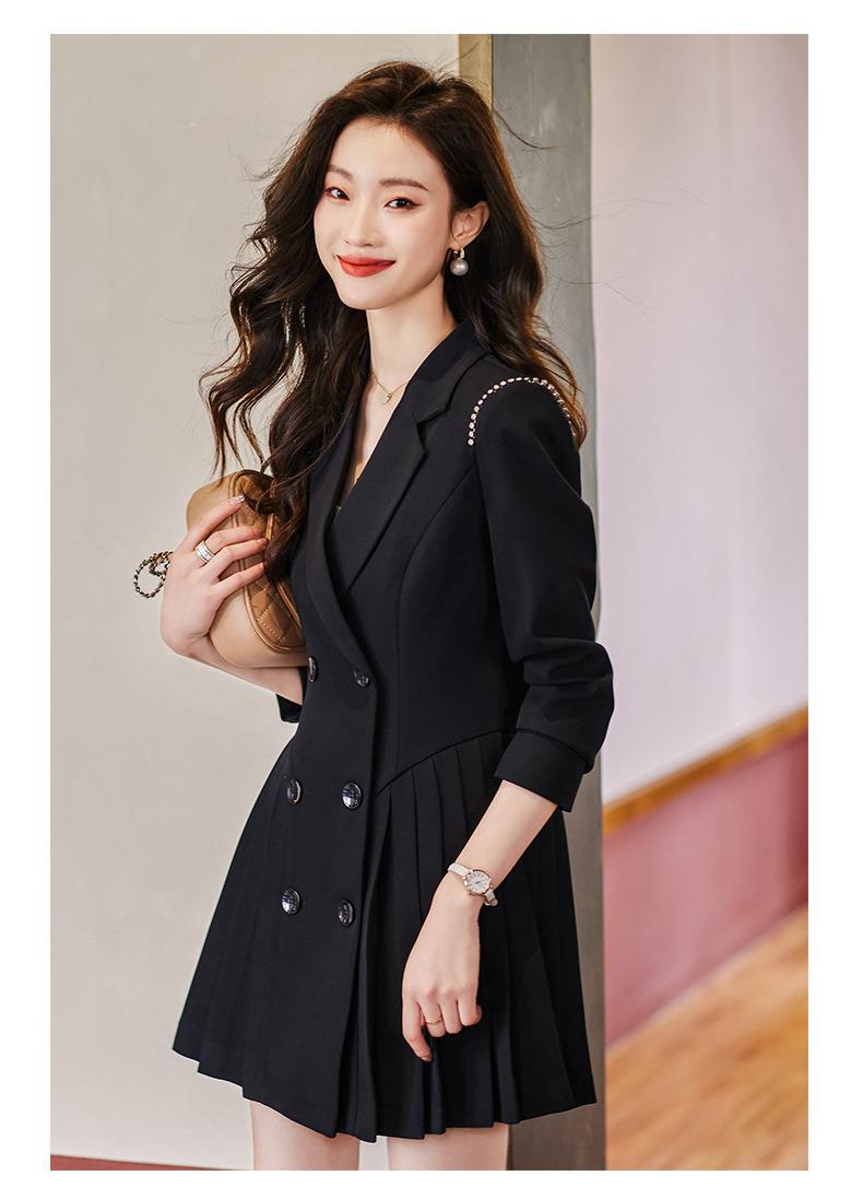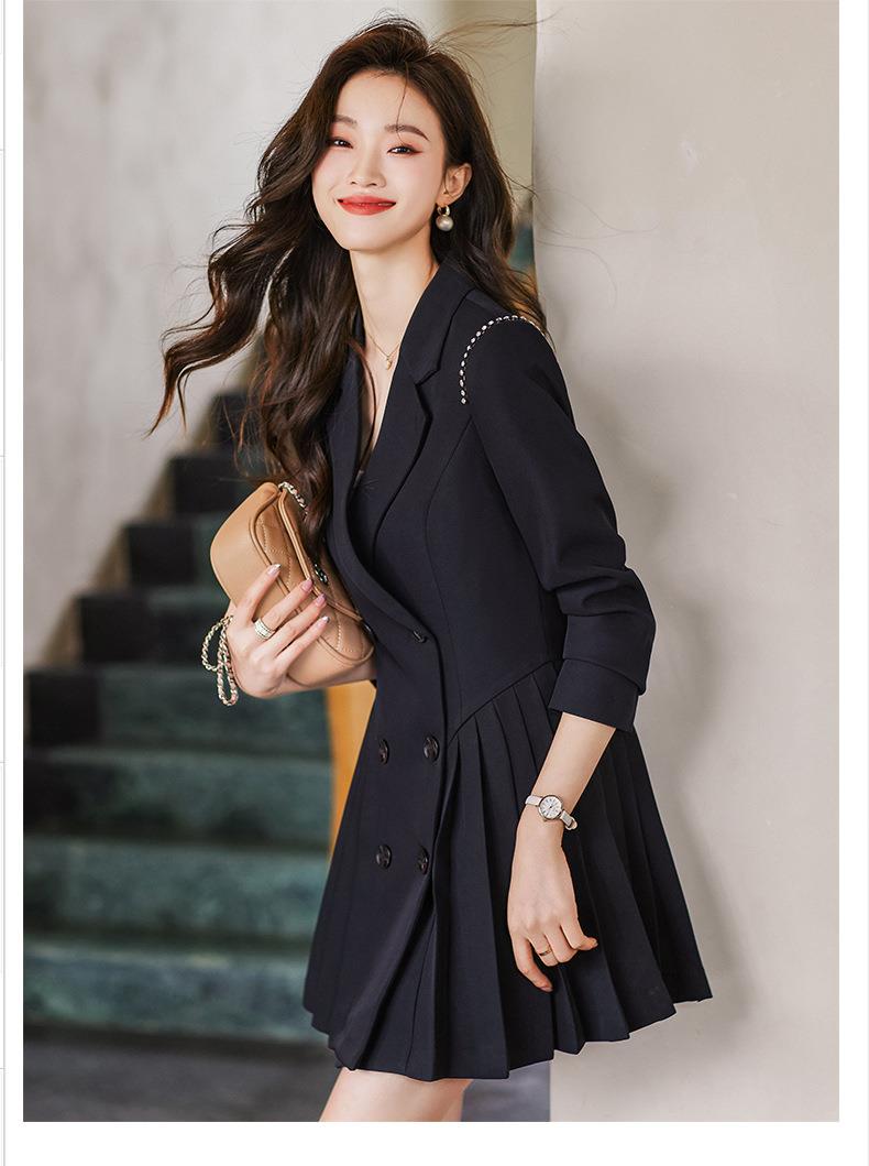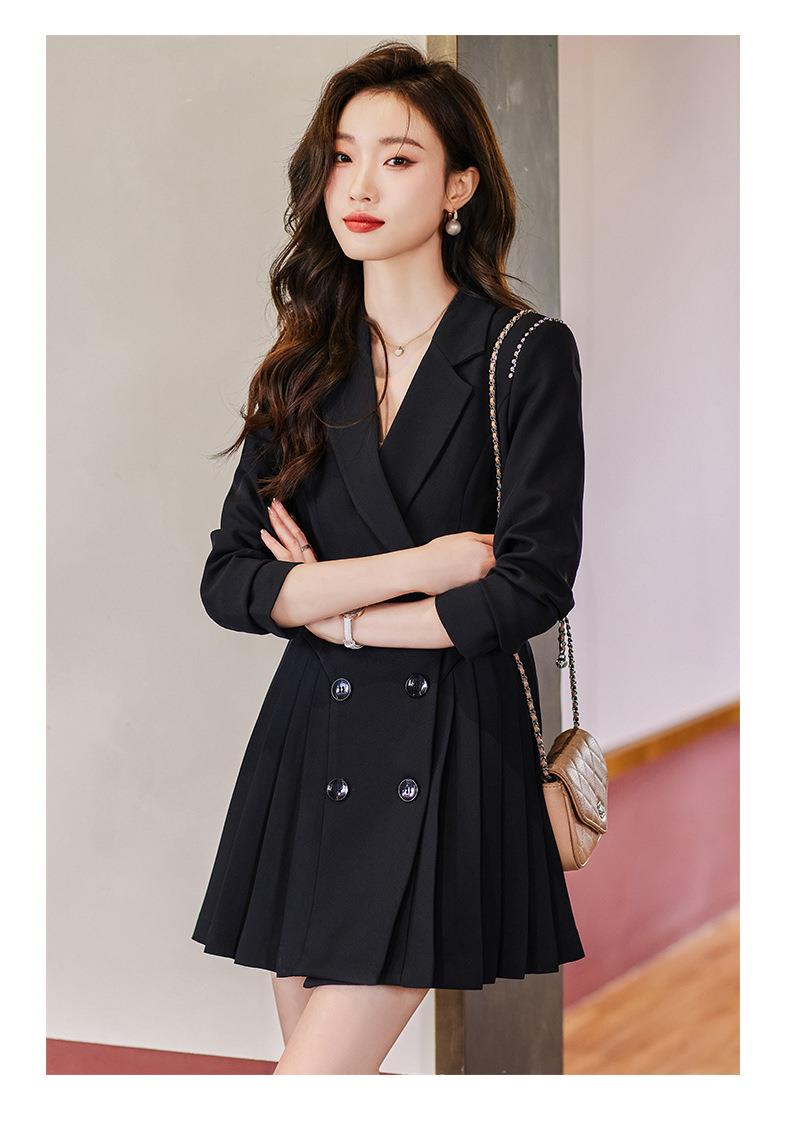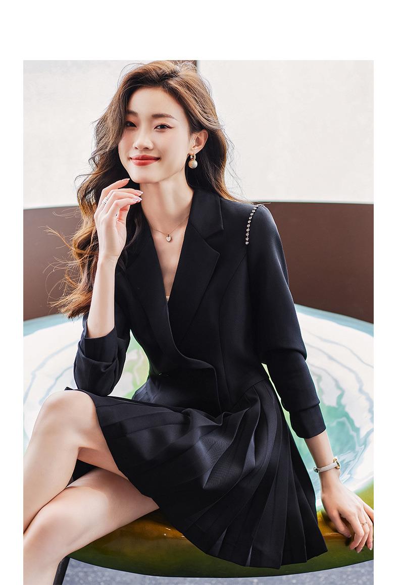 娜璐多 西装连衣裙女高冷御姐风气质收腰百褶裙A字短裙2023秋季新款女神