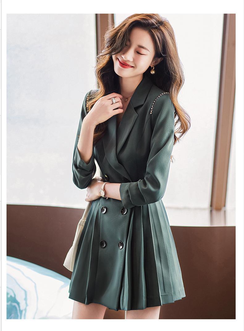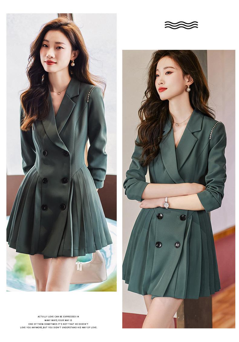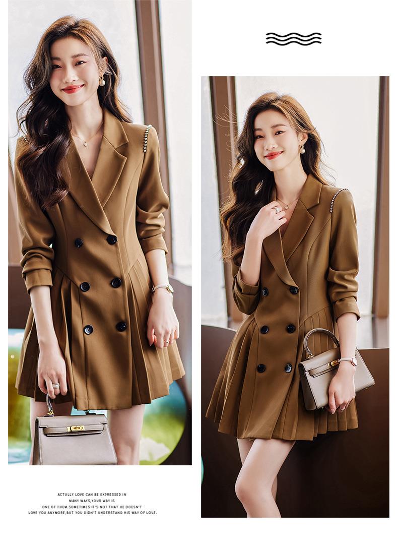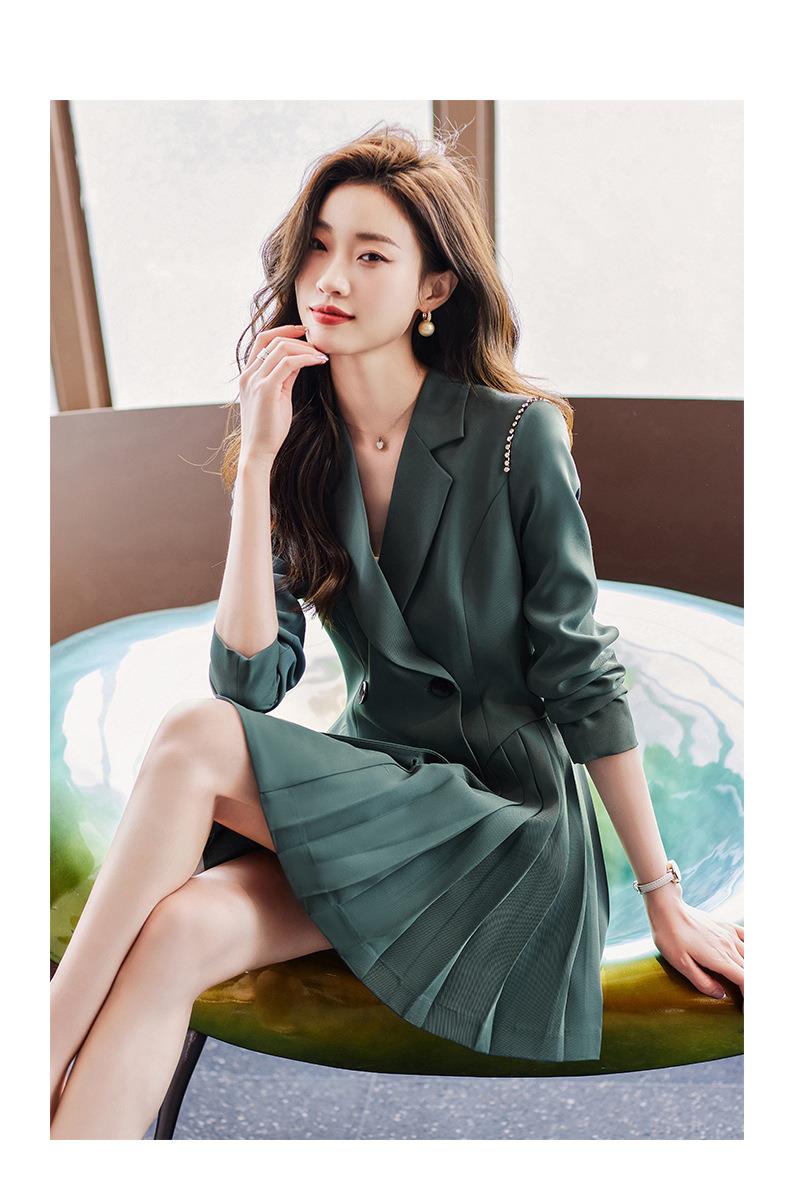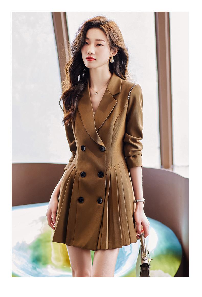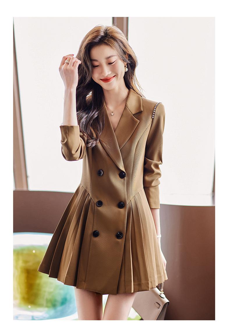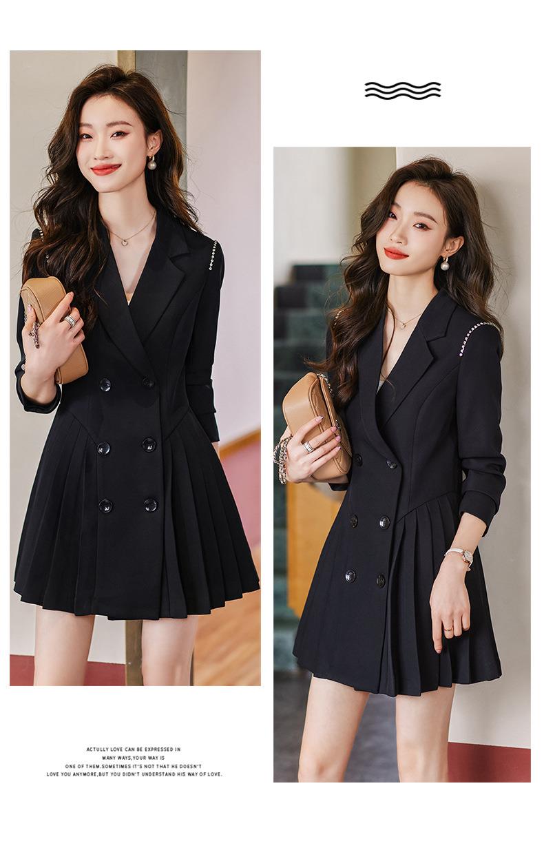 娜璐多 西装连衣裙女高冷御姐风气质收腰百褶裙A字短裙2023秋季新款女神