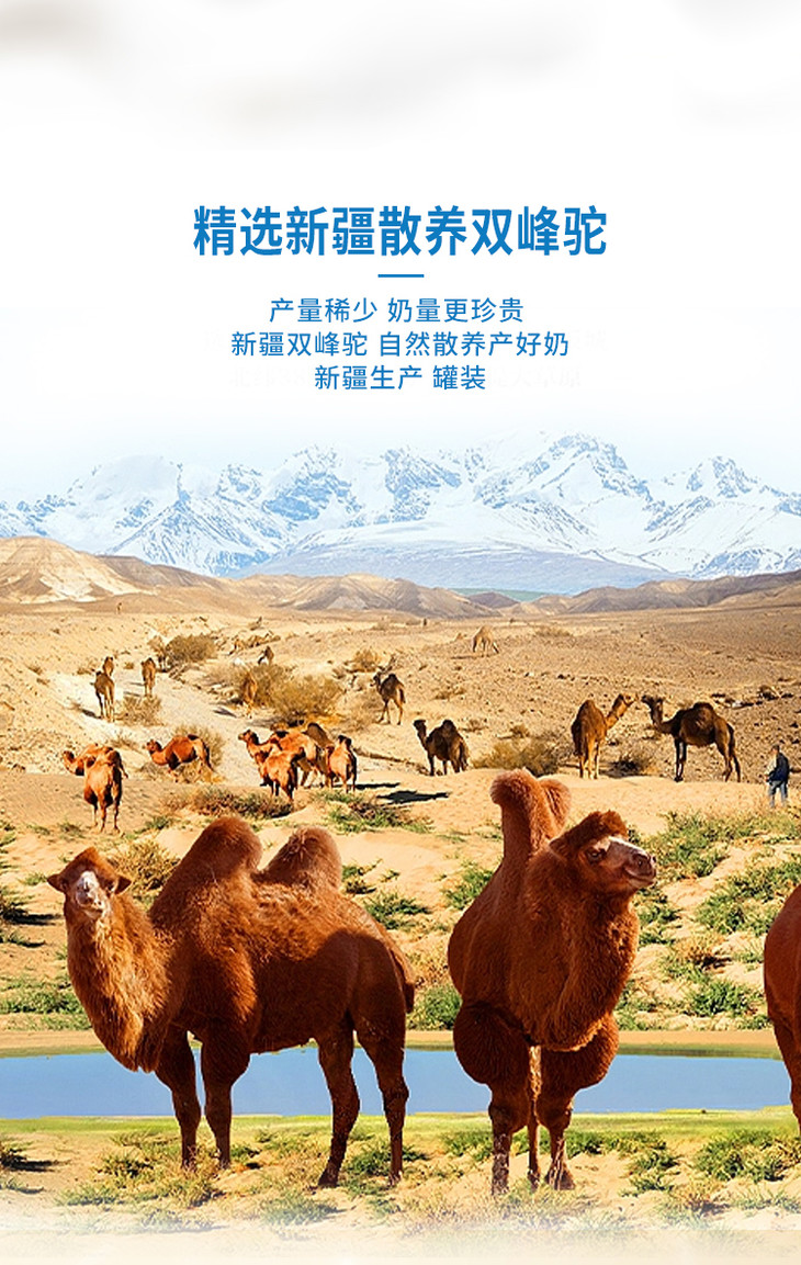 新疆双峰驼喝的是天山的冰山雪水,吃的是仙人掌、沙棘、骆驼刺等具有药用价值的天然植物。是真正的散养,不打激素,不用抗生素,并且有顽强的生命力,一生基本上不生病~