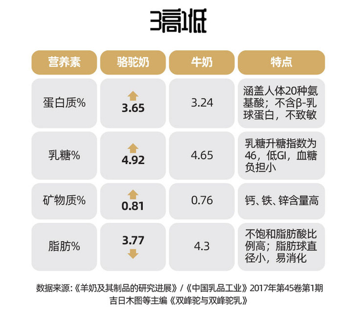 A:驼奶中主要含有类胰岛素蛋白因子和EGF上皮细胞活性因子,驼奶不腥不膻,较香,不甜腻,适合大众,老少皆宜噢