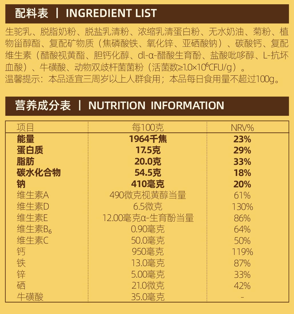 【商品名称】金驼冠 益生菌配方驼乳粉