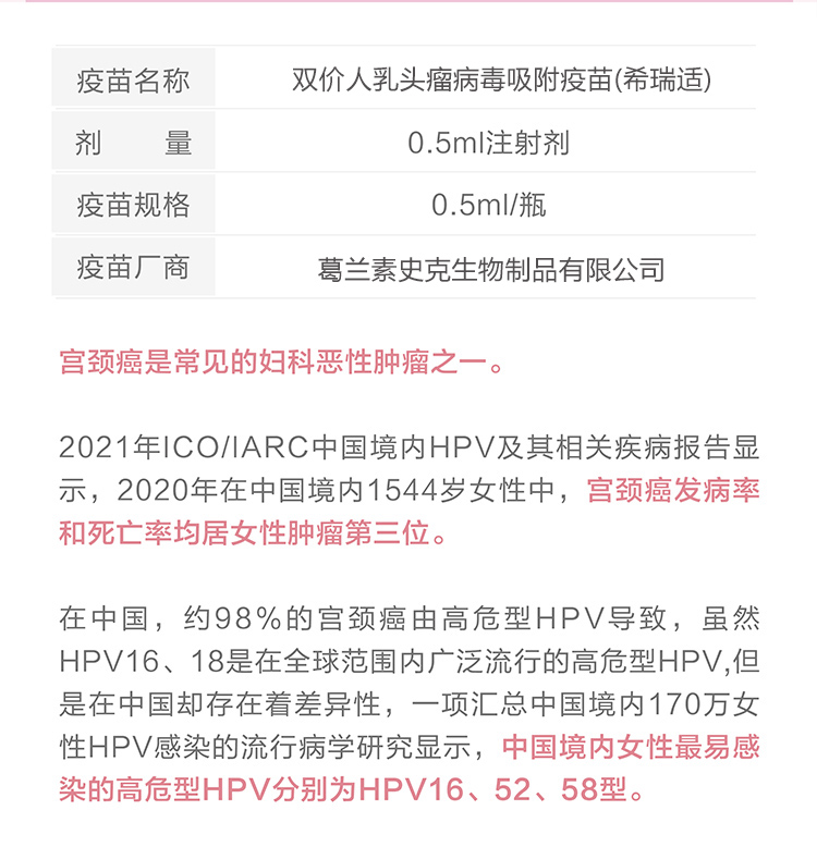 3、惠民政策:参与本次惠民政策适龄女性在接种第3针时直接减免1针疫苗费用580元(全程接种3针原本所需费用1830元,减免后费用1250元)