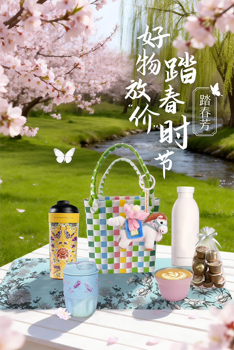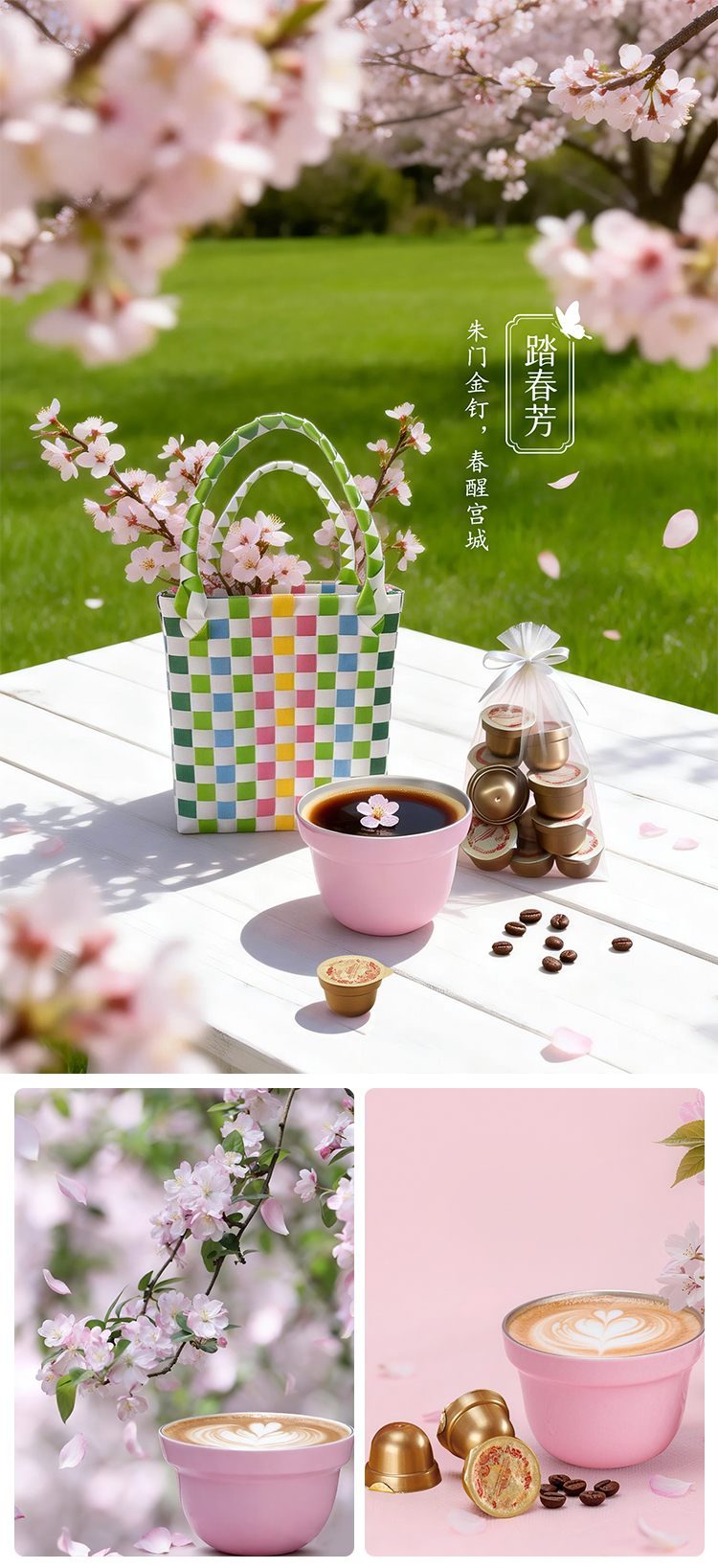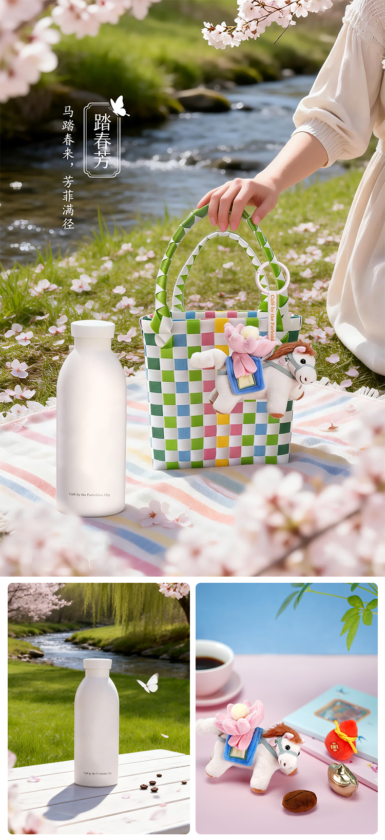 故宫角楼咖啡踏春芳系列保温杯冻干咖啡粉桌垫