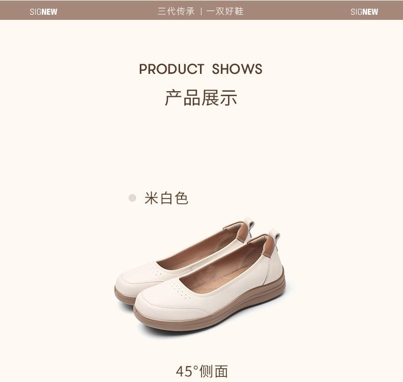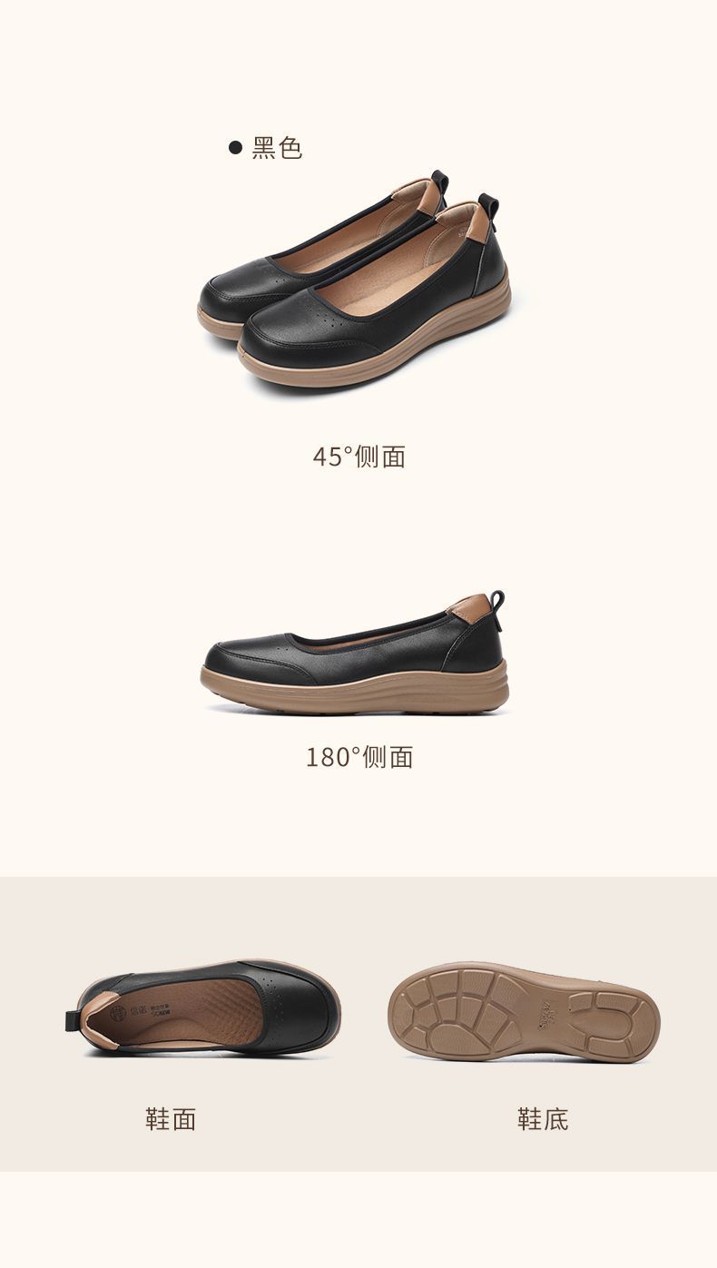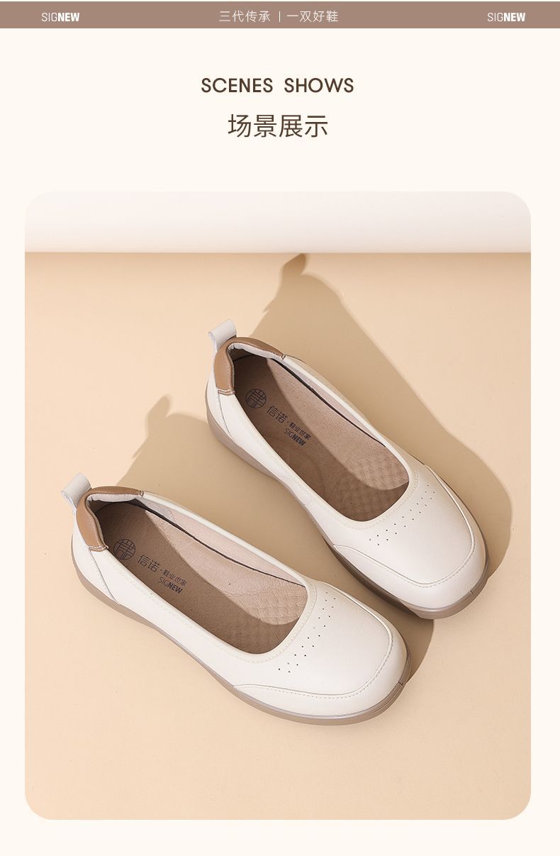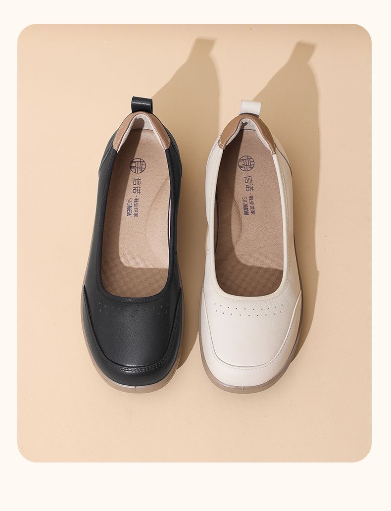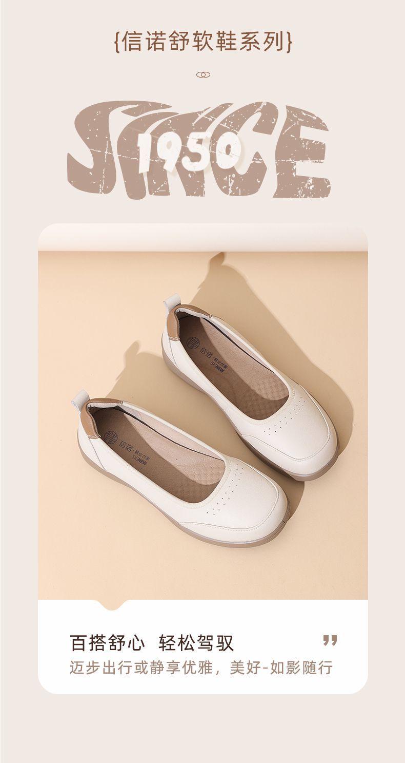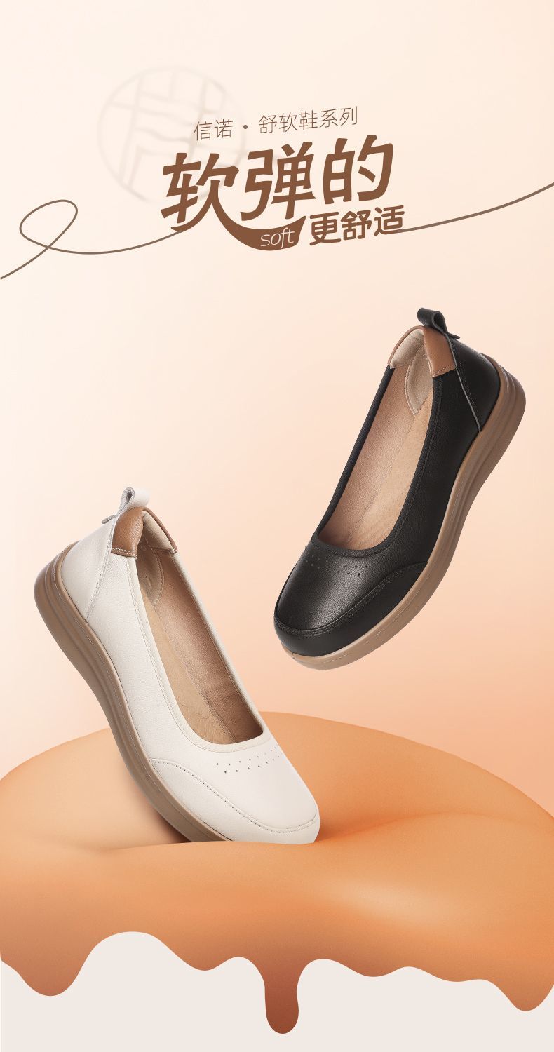 信诺软皮妈妈单鞋软底2025舒适透气新款真皮休闲平底浅口女单鞋子5C8166-6