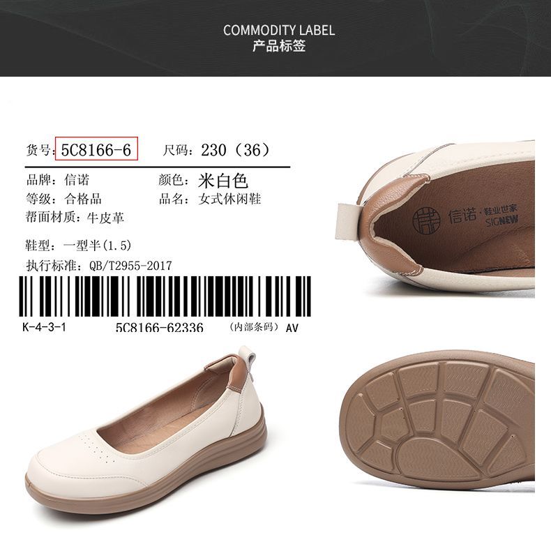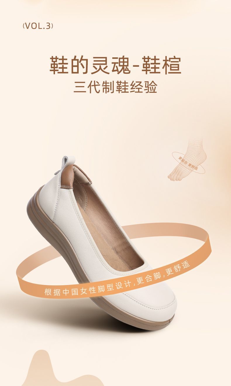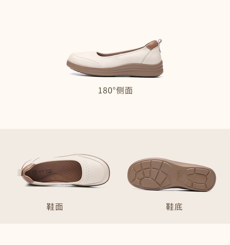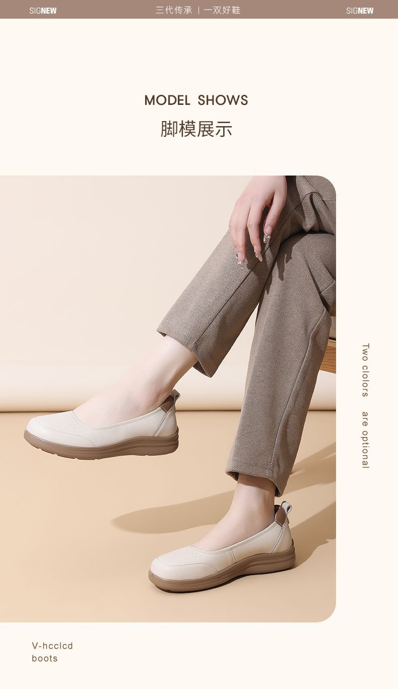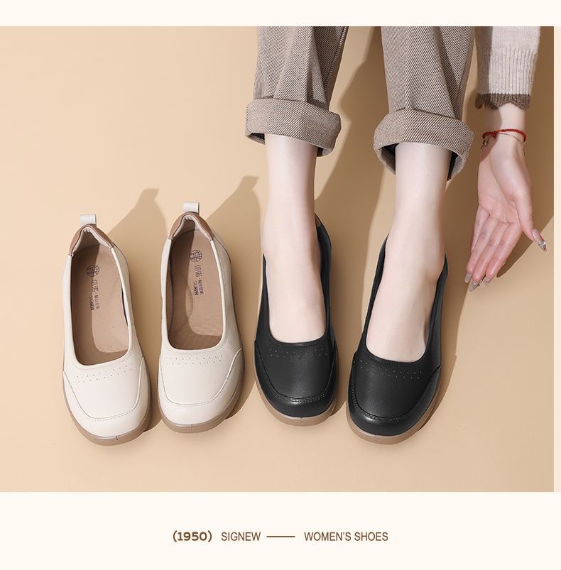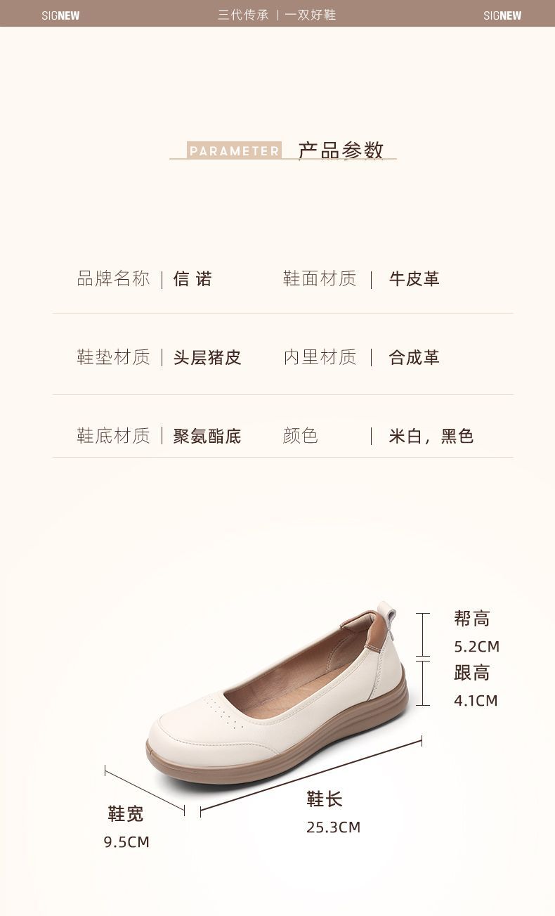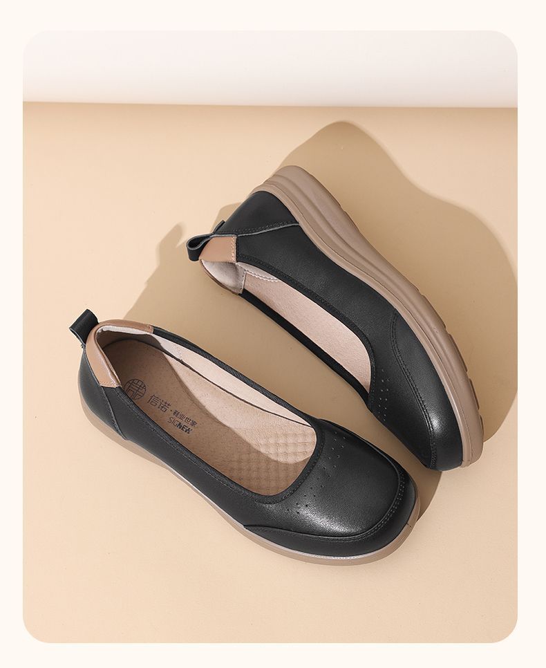 信诺软皮妈妈单鞋软底2025舒适透气新款真皮休闲平底浅口女单鞋子5C8166-6