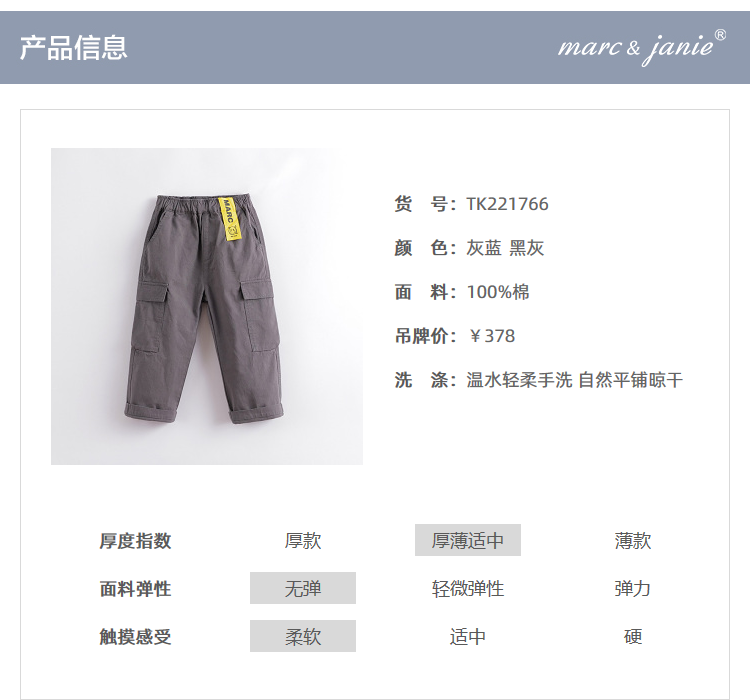 马克珍妮秋装新款 男童工装风大口袋直筒裤 儿童裤子221766