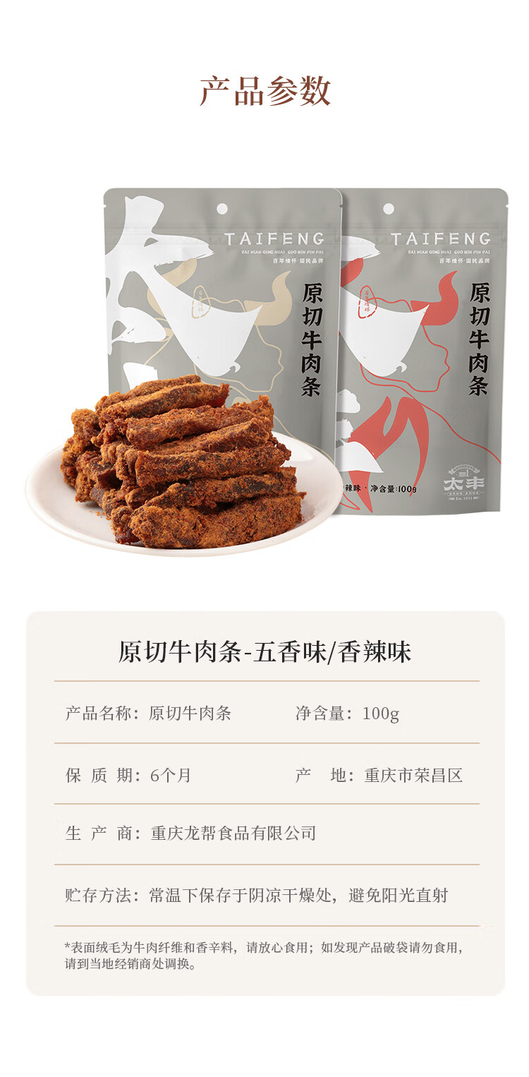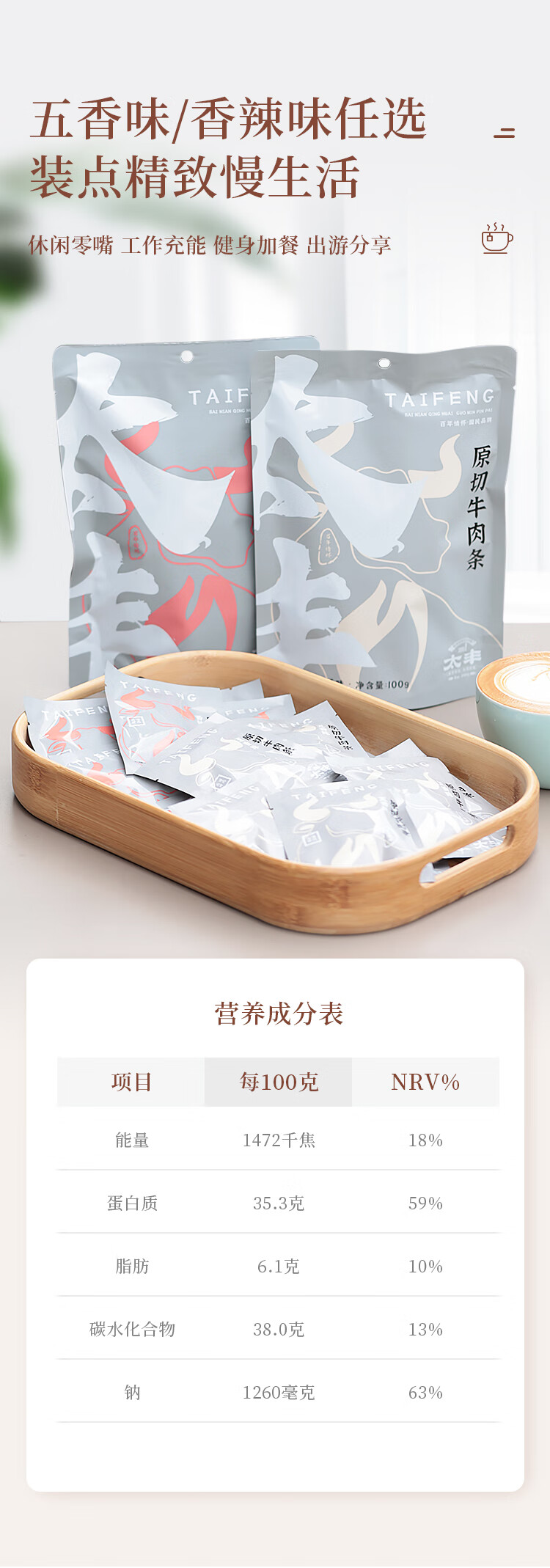 太丰原切牛肉条100g五香味/香辣味 手撕牛肉干