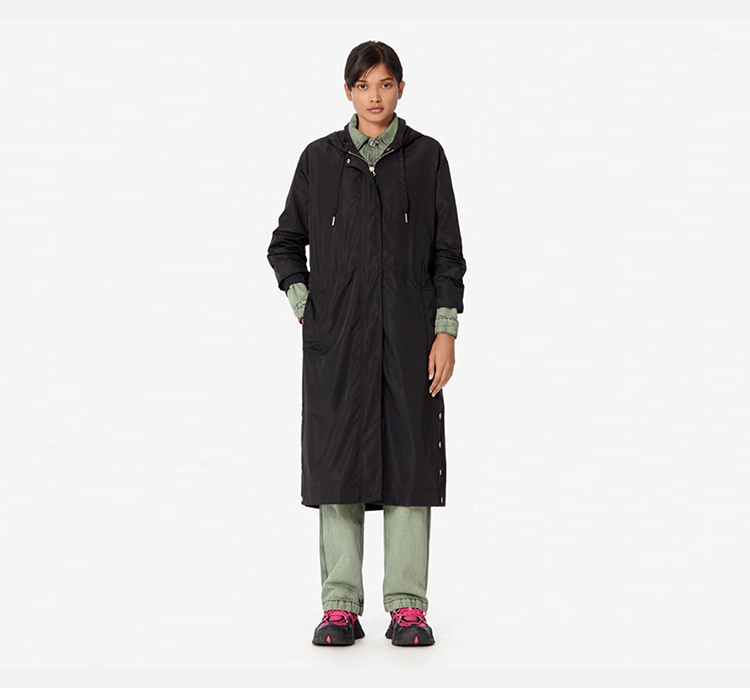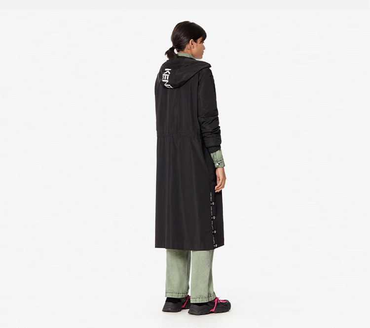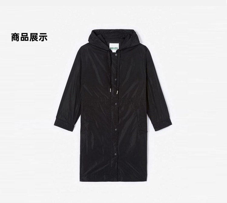 KENZO 高田贤三 女士中长款字母印花连帽外套 黑色 F962 OU045 567 99