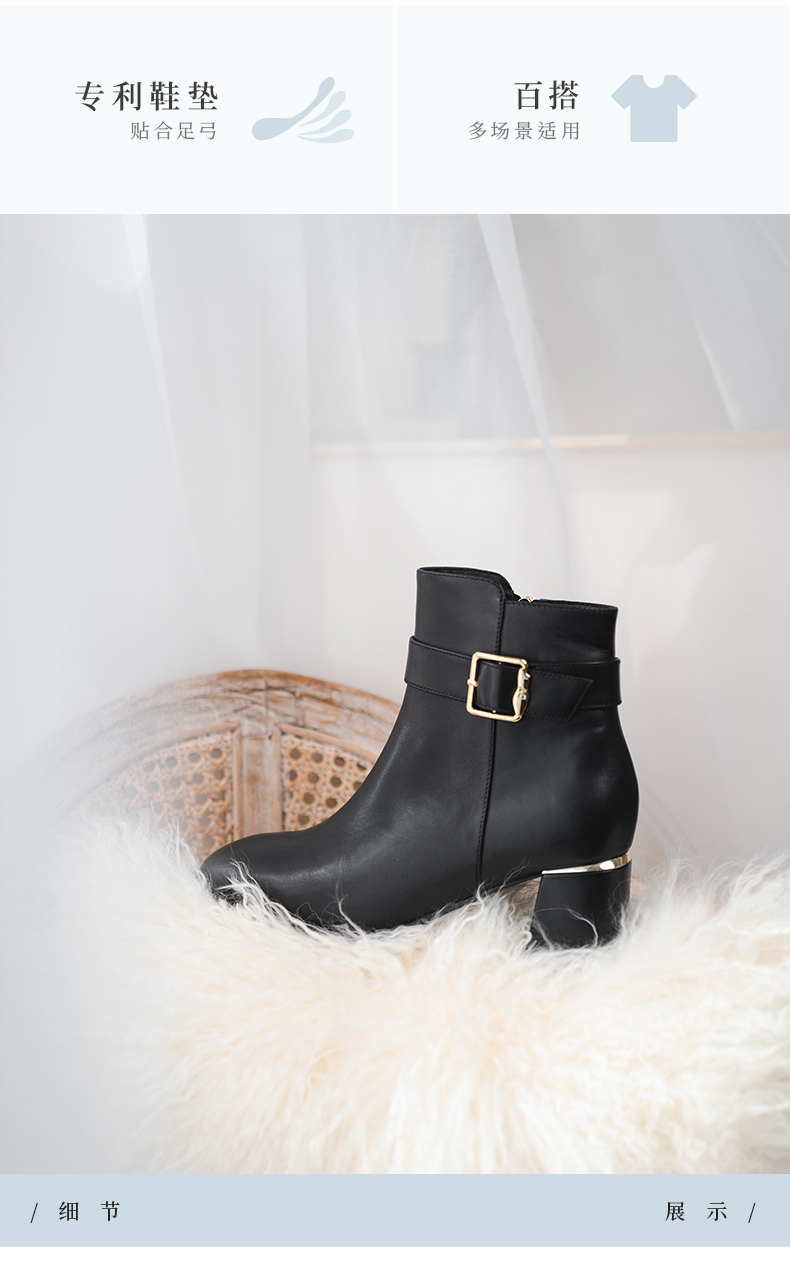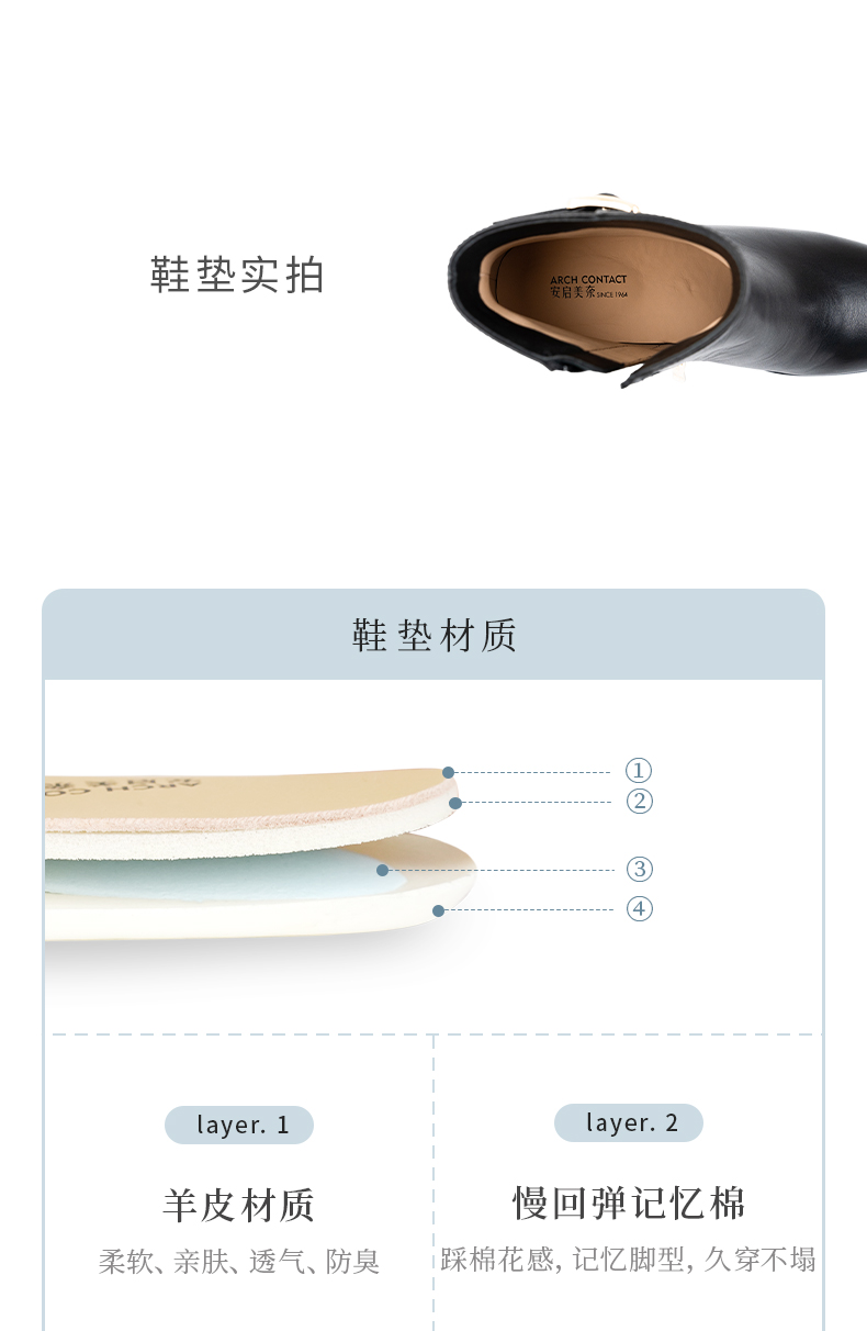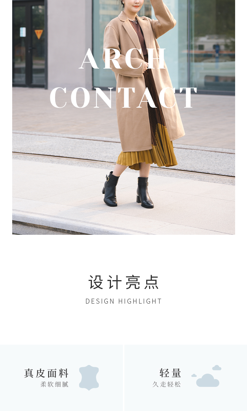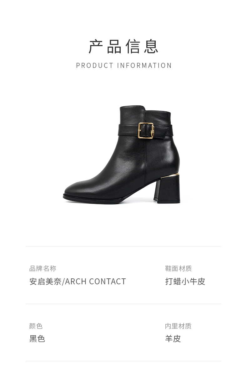 ARCH CONTACT安启美奈秋冬新品舒适鞋底高跟打蜡小牛皮女靴