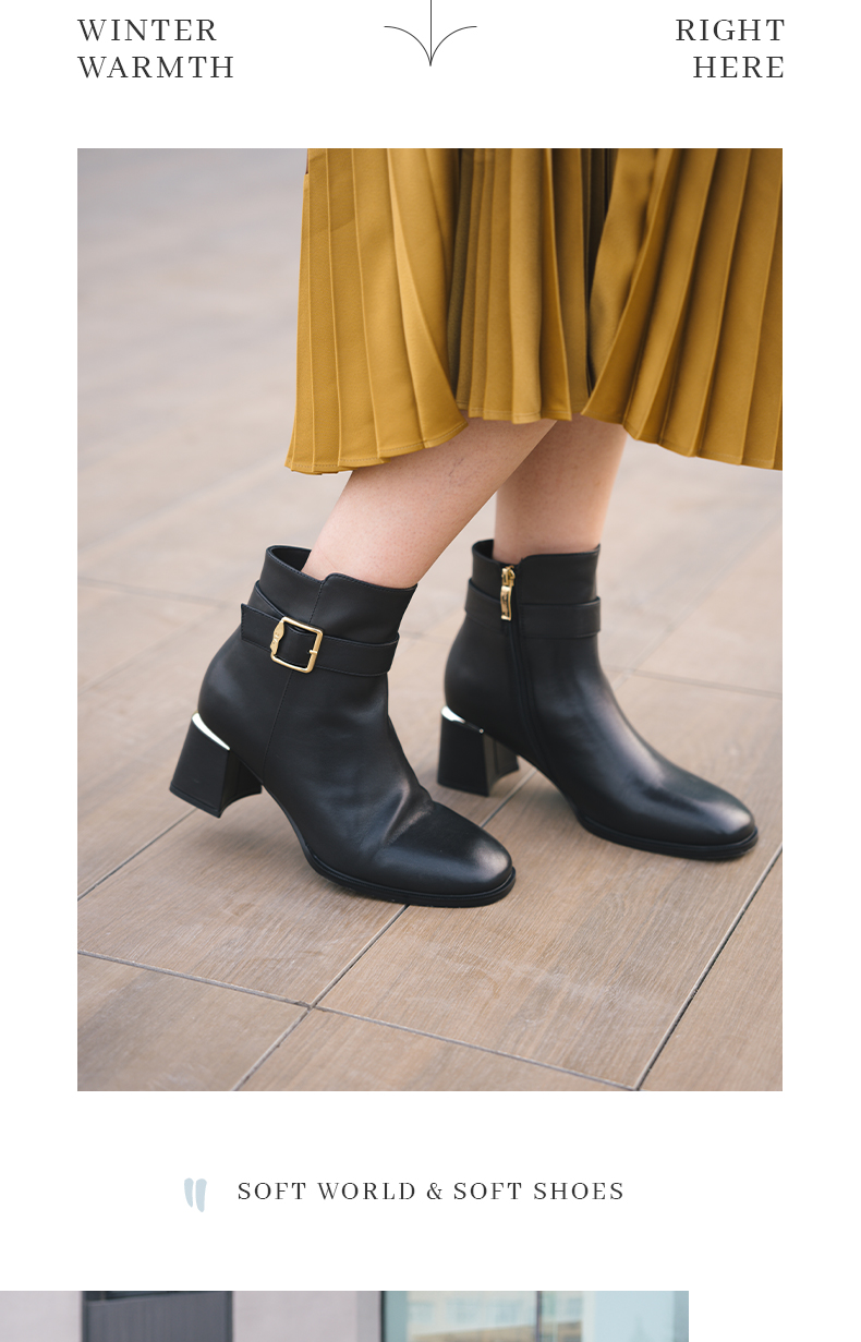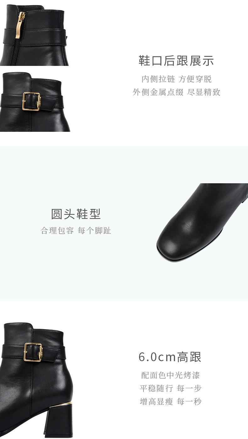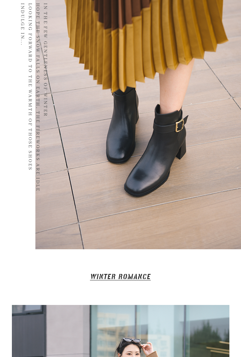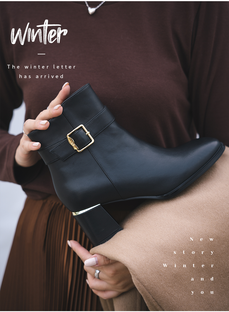 ARCH CONTACT安启美奈秋冬新品舒适鞋底高跟打蜡小牛皮女靴