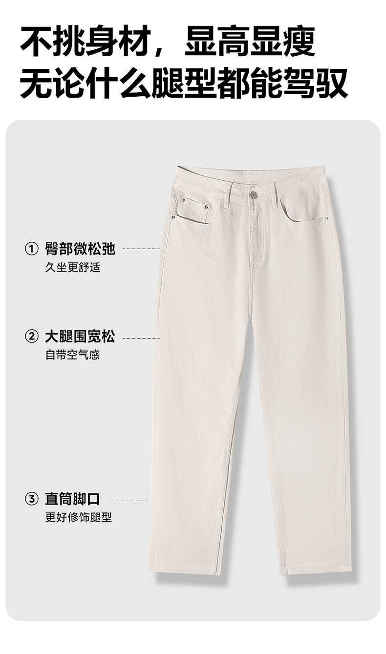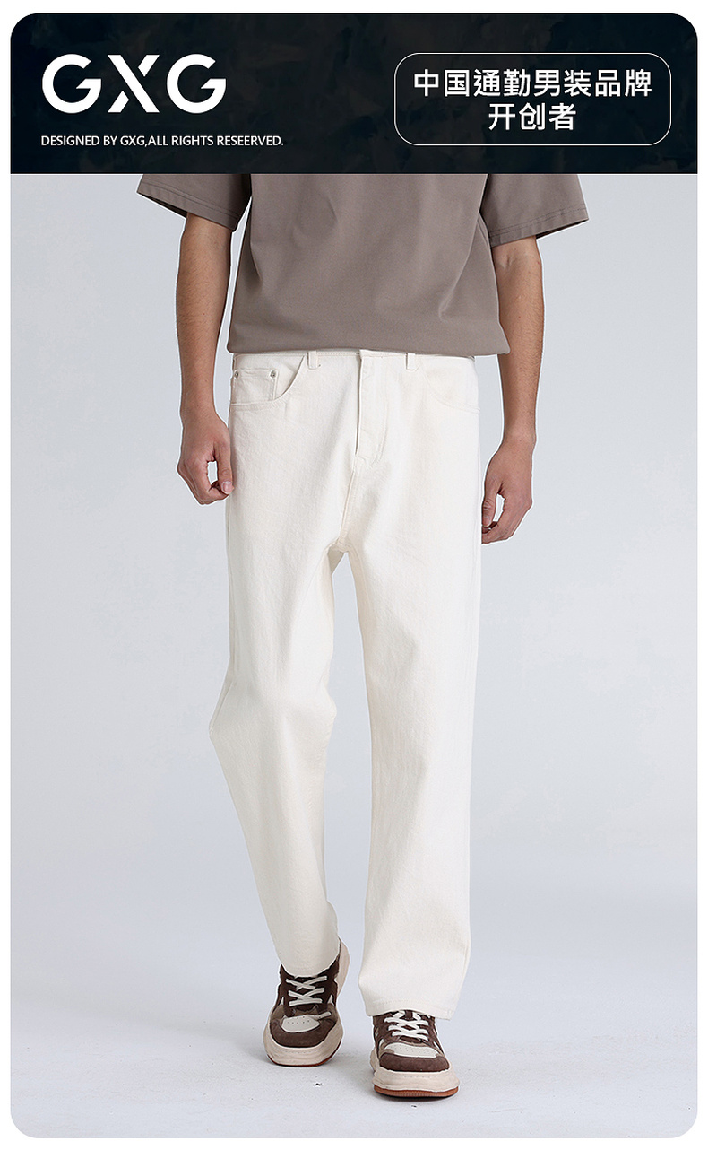 GXG男装26春季简约纯色日常通勤舒适棉弹直筒休闲男式牛仔长裤K&C