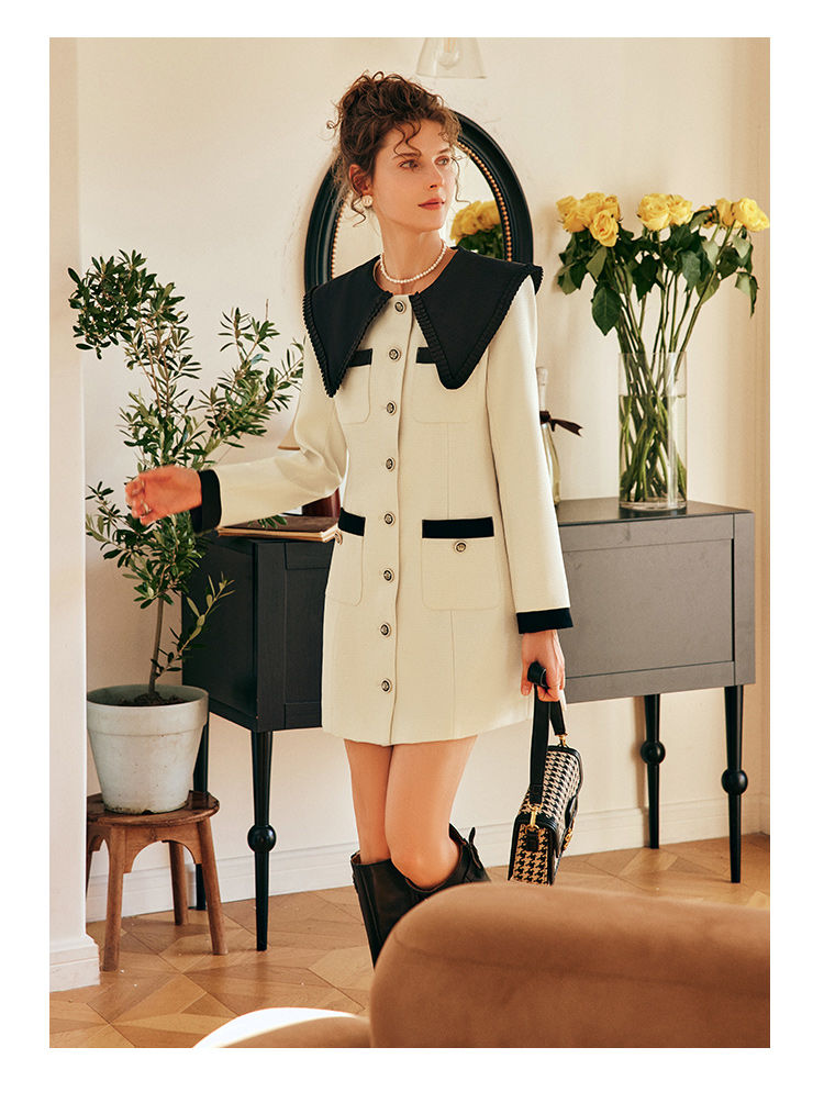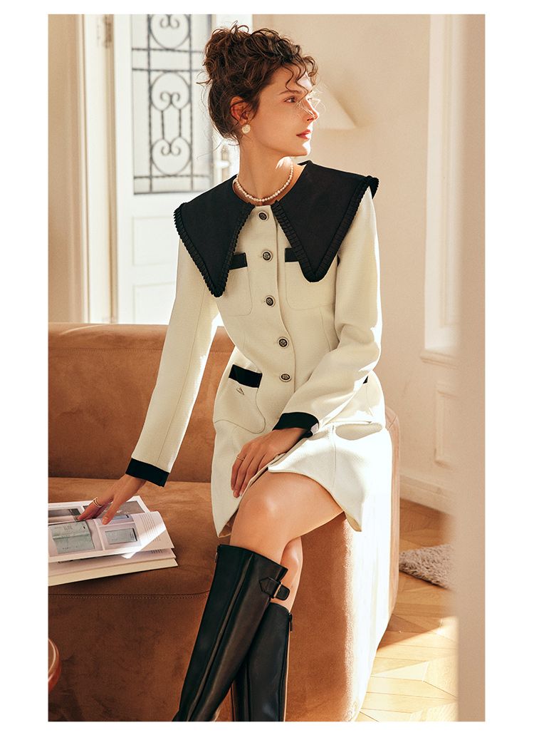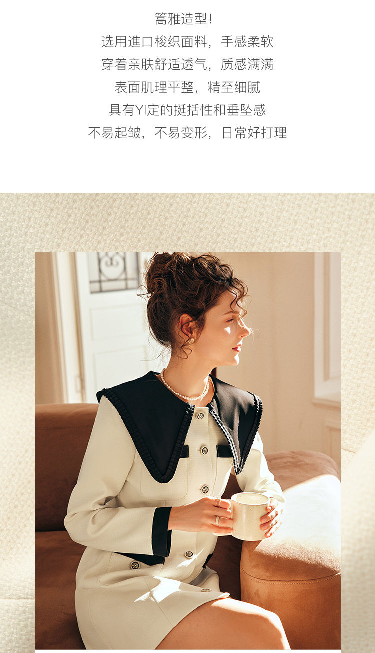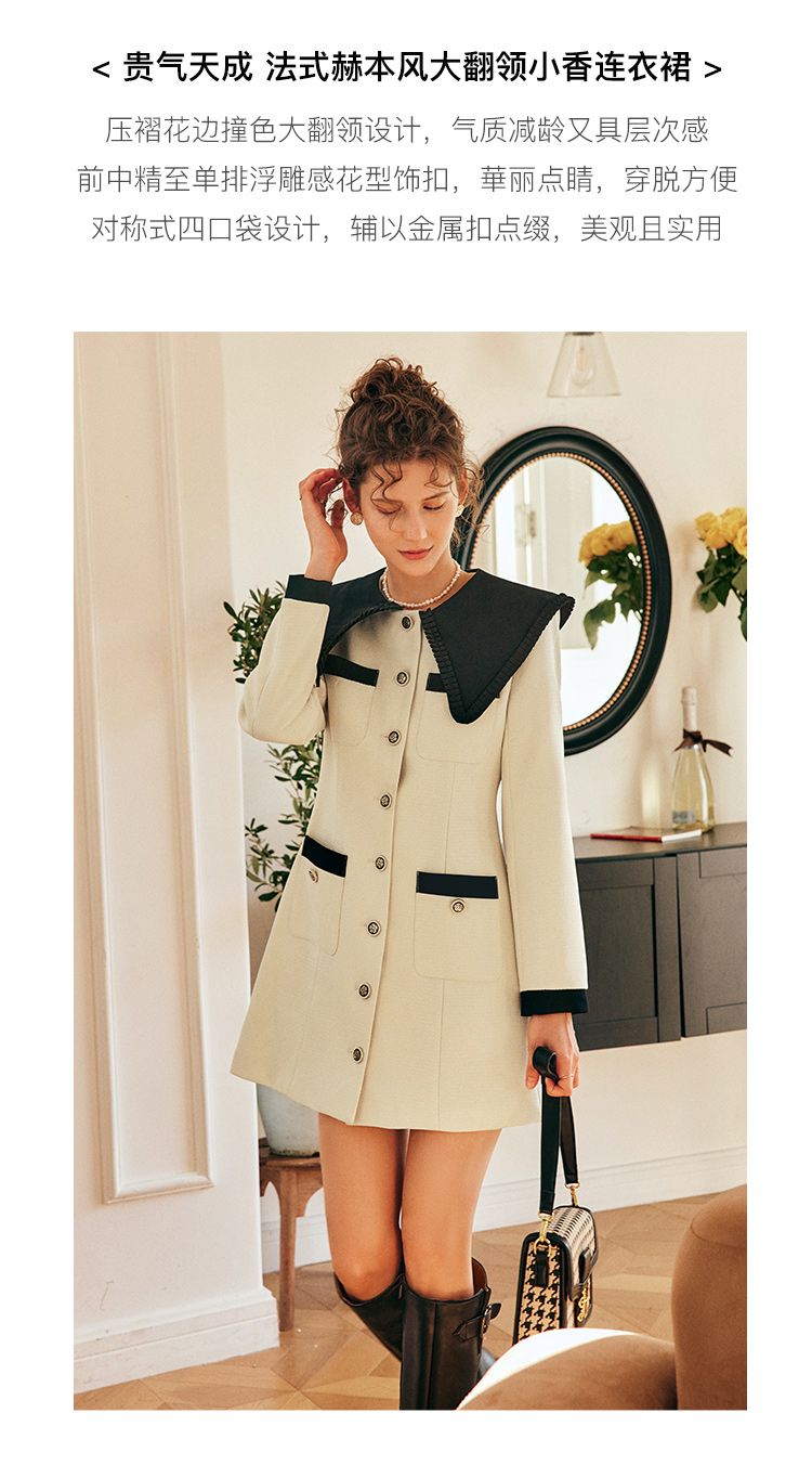 OLrain欧芮儿法式赫本风连衣裙女早春2023新款收腰小个子拼色裙子