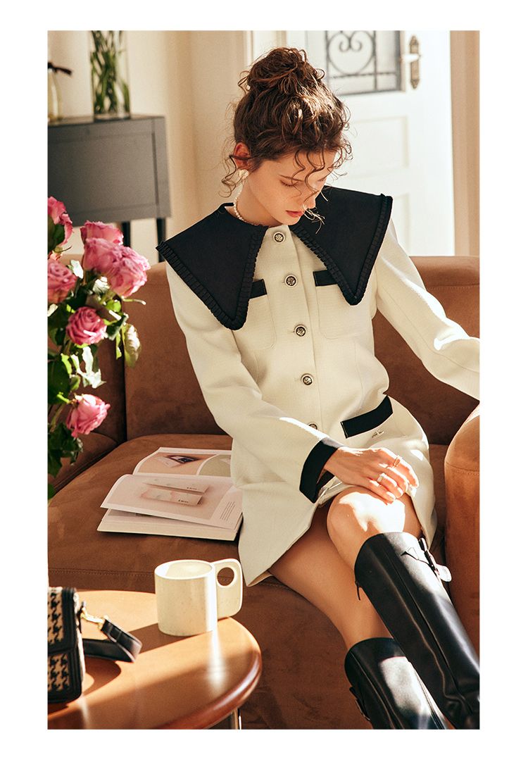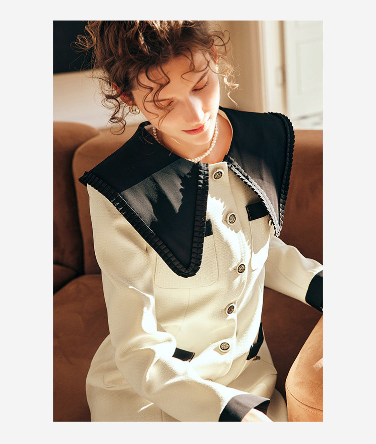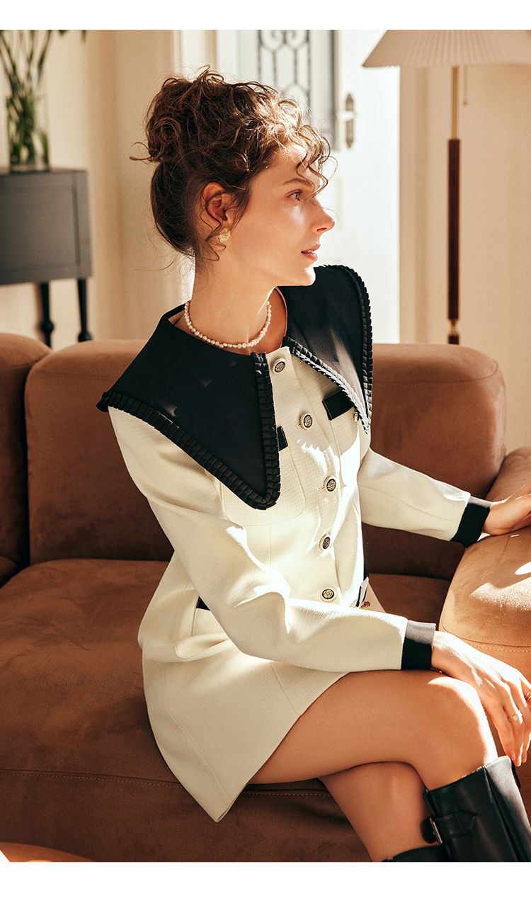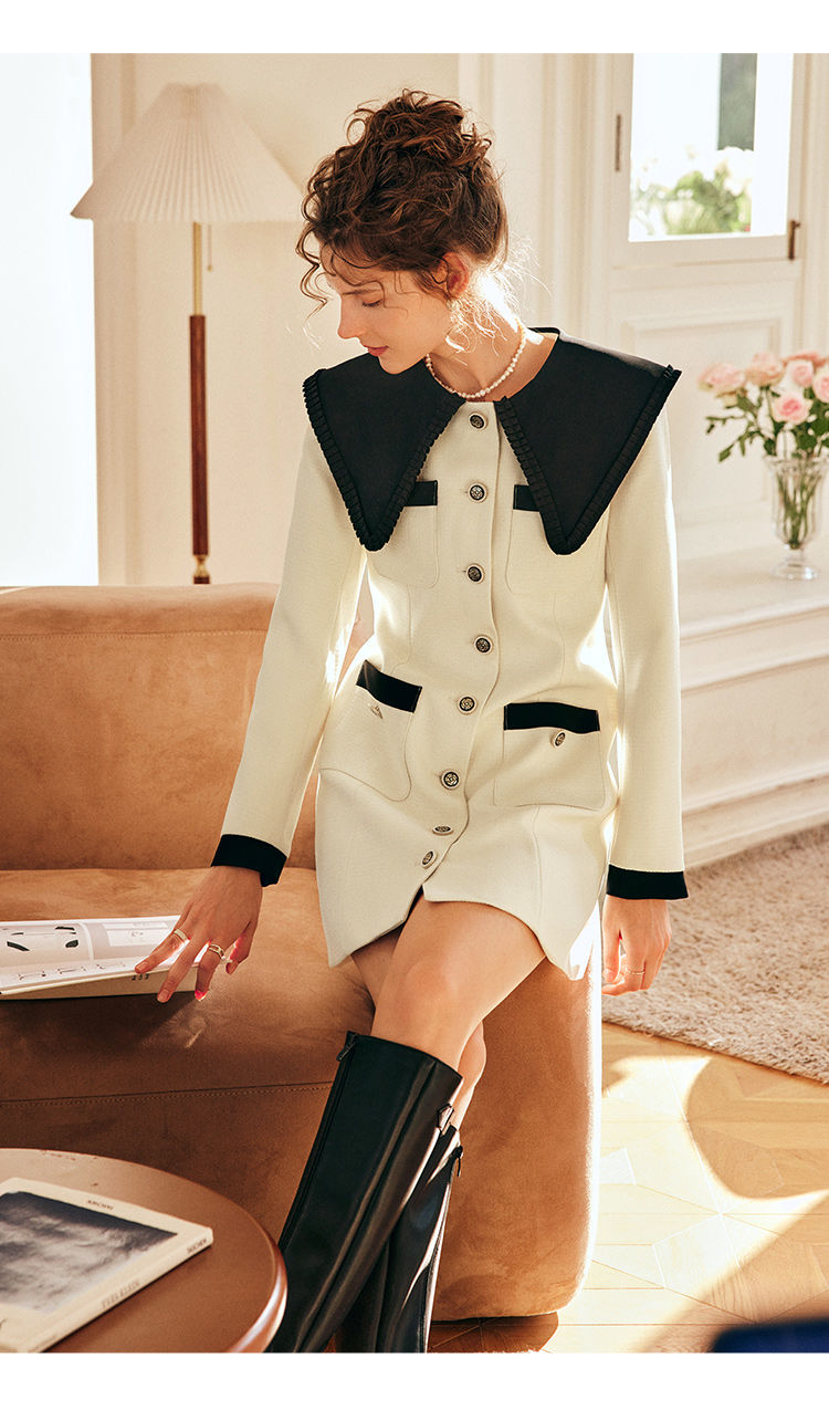 OLrain欧芮儿法式赫本风连衣裙女早春2023新款收腰小个子拼色裙子