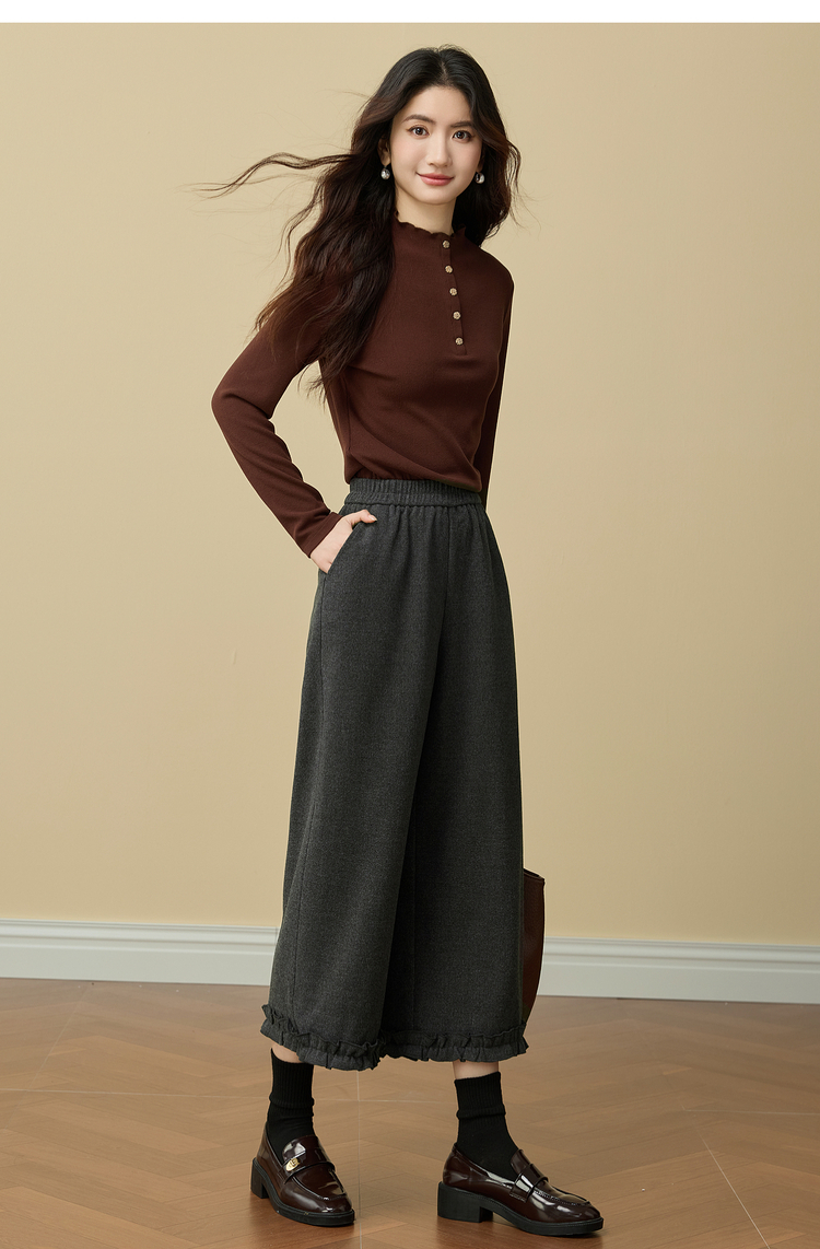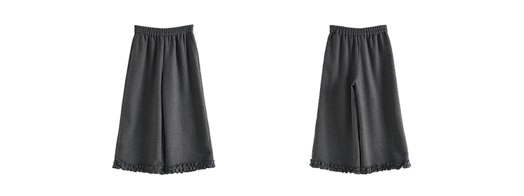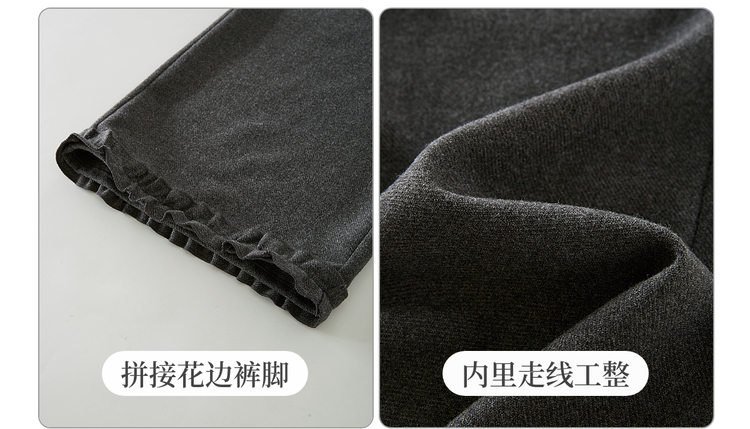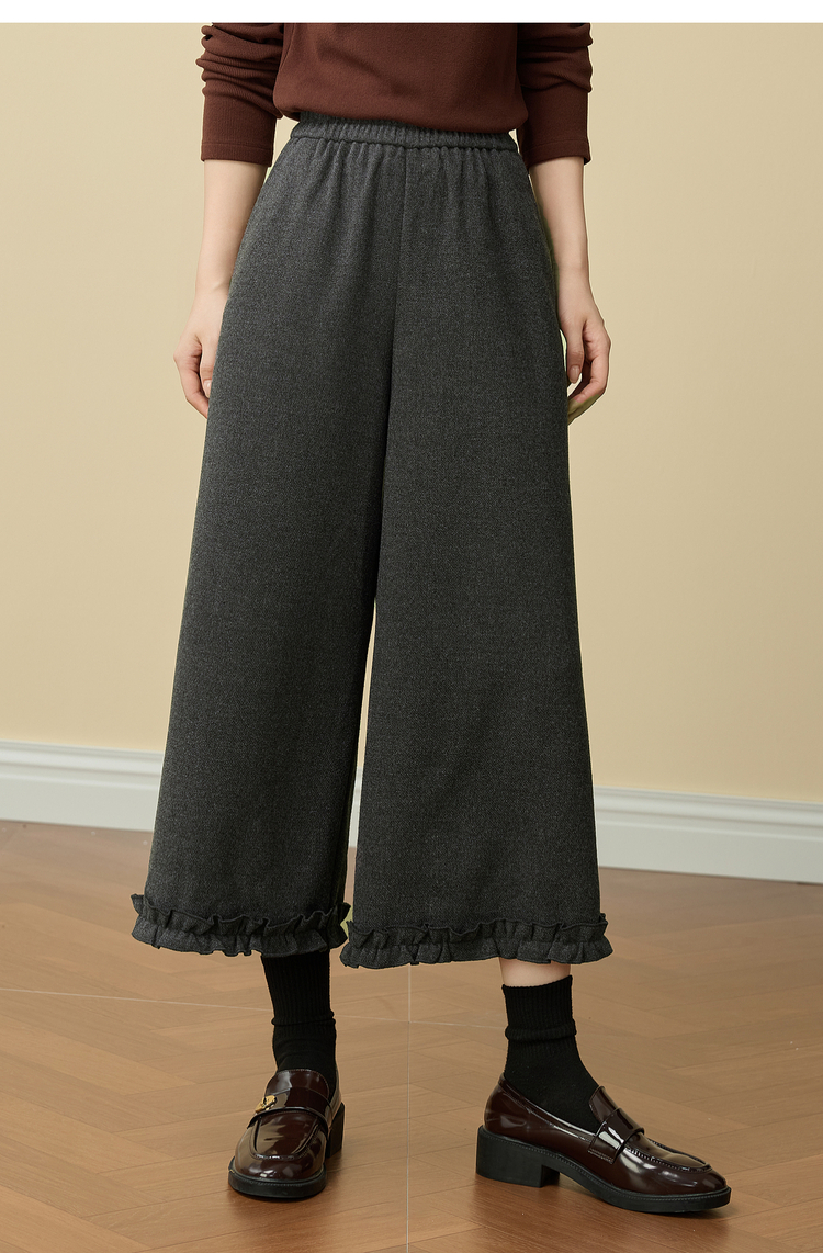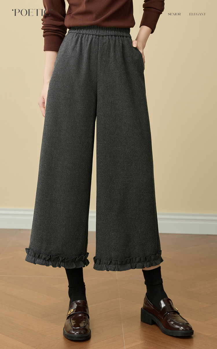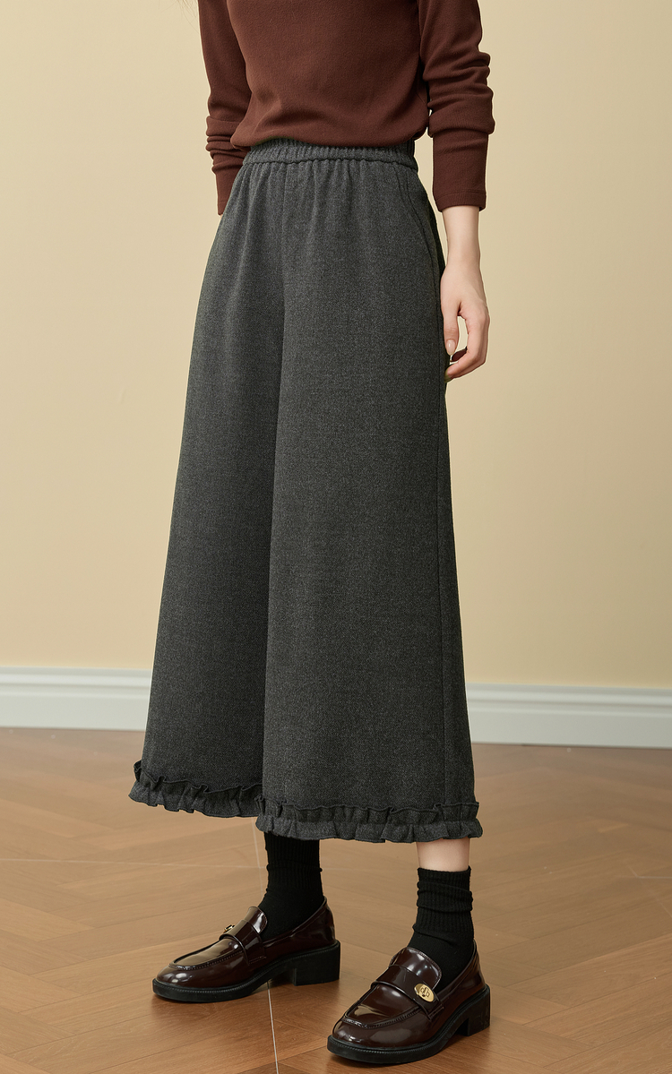 【12/03新品】熙世界灰色木耳花边阔腿裤女2025秋冬新款小个子八九分直筒休闲裤