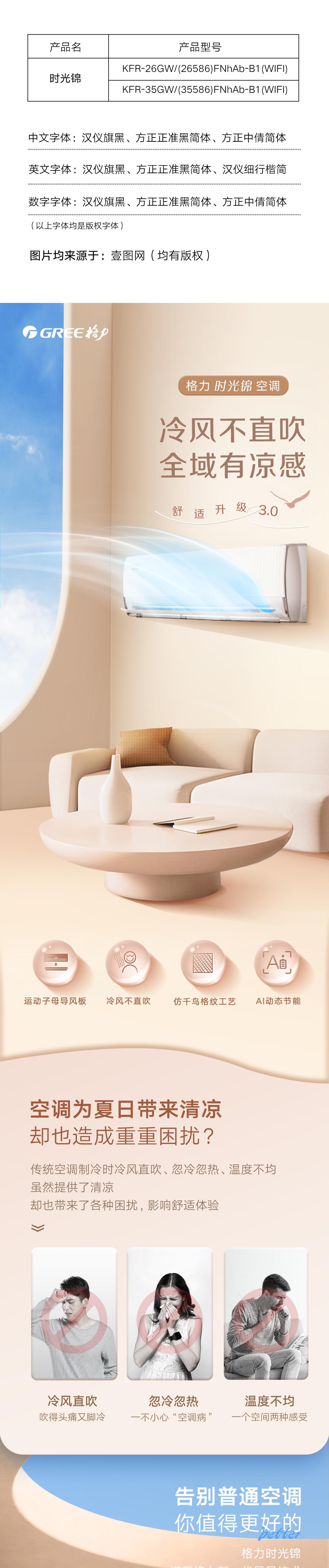 时光锦变频冷暖1级能效挂机空调 (格调米)26586/35586