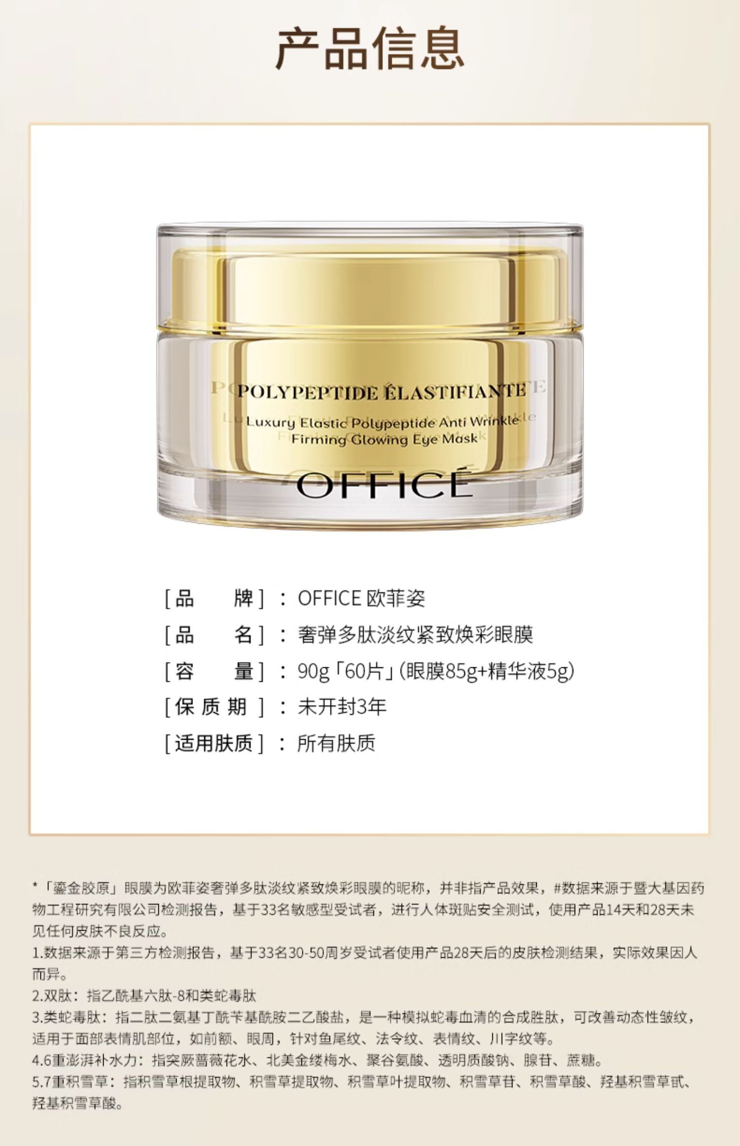 全新升级🎊OFFICE 欧菲姿 奢弹多肽淡纹紧致焕彩眼膜 90g