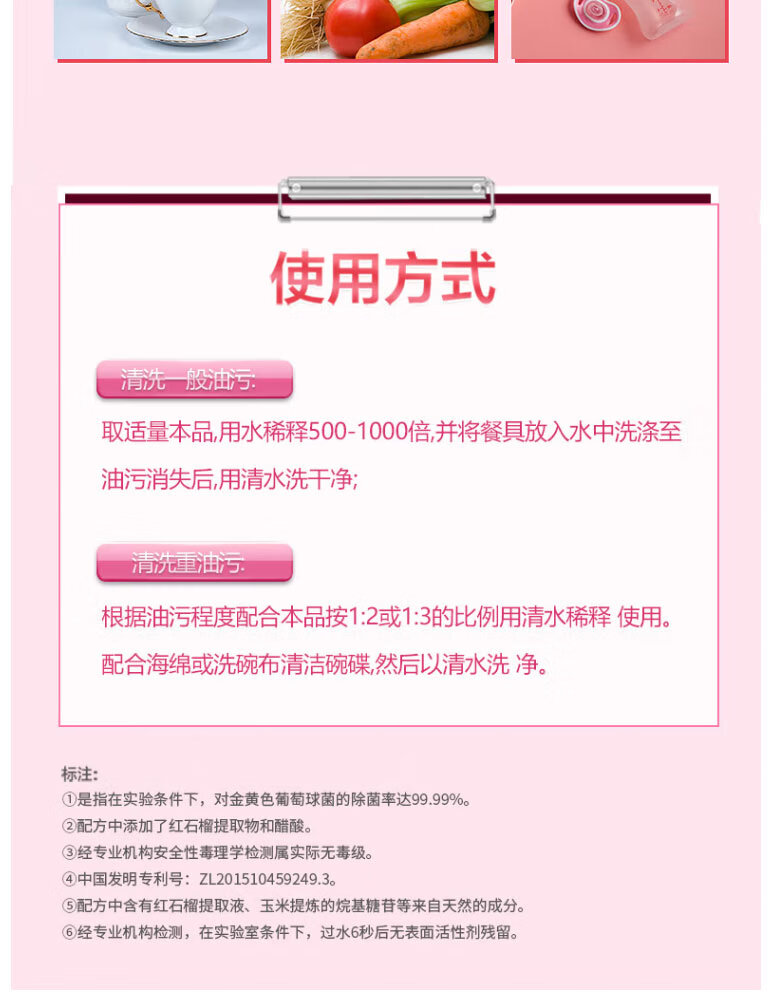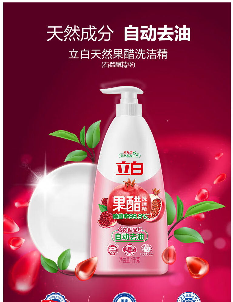 【大促秒杀】立白 红石榴果醋洗洁精1kg*2瓶 食品级A类标准 不伤手 轻松去油污
