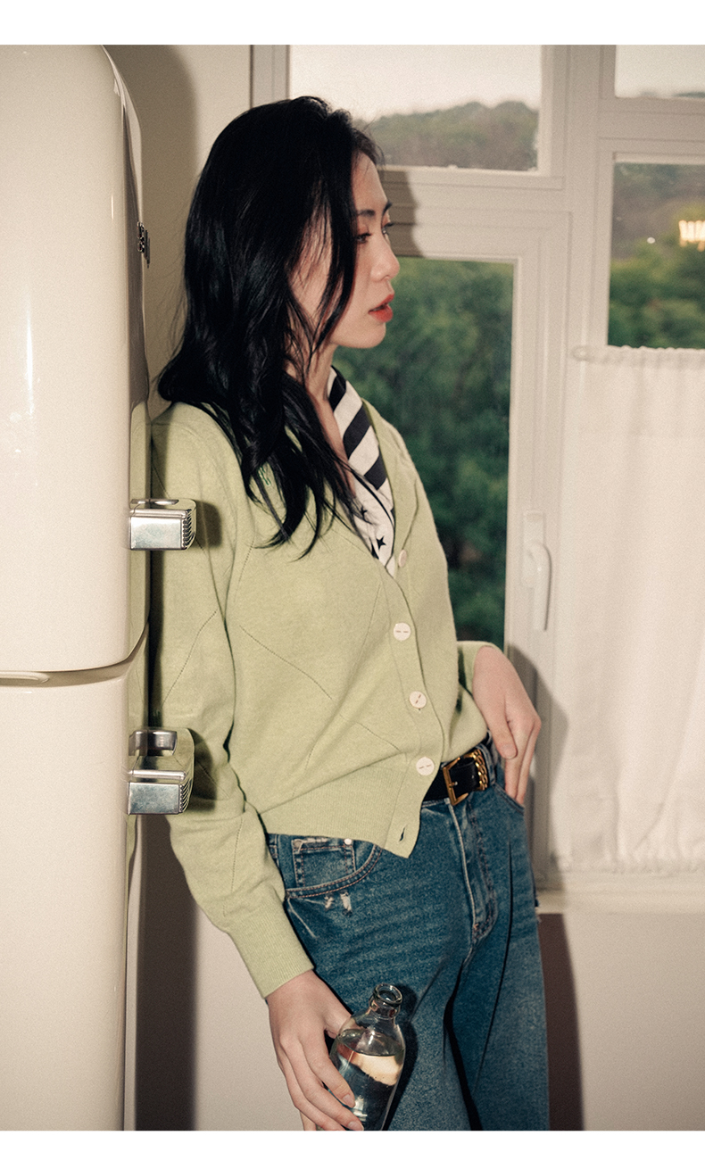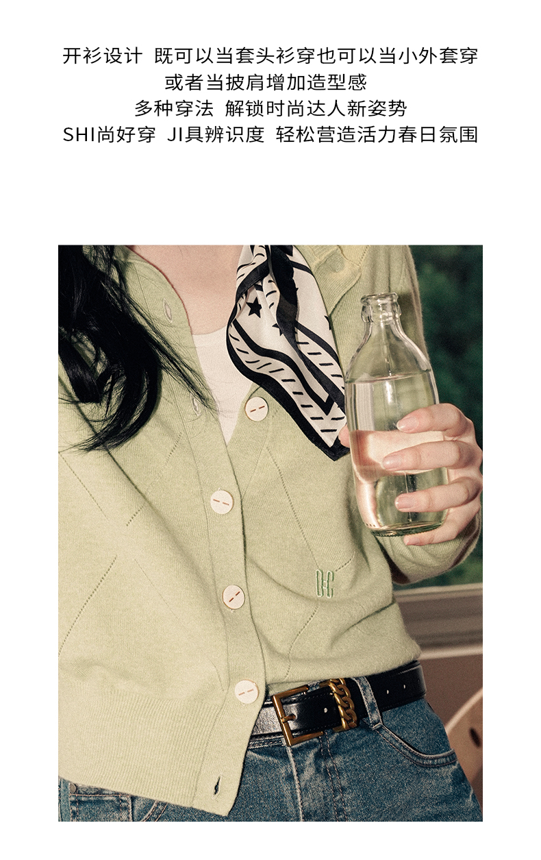 oldcolour纯色针织开衫2023春季气质通勤薄款短款外套女P11053154