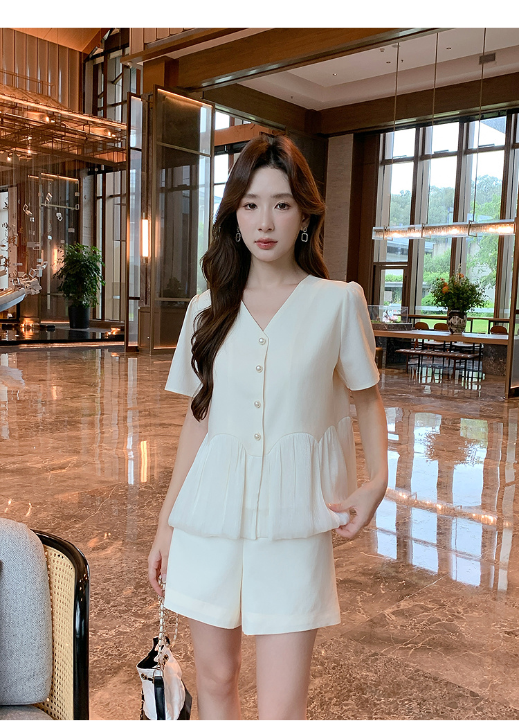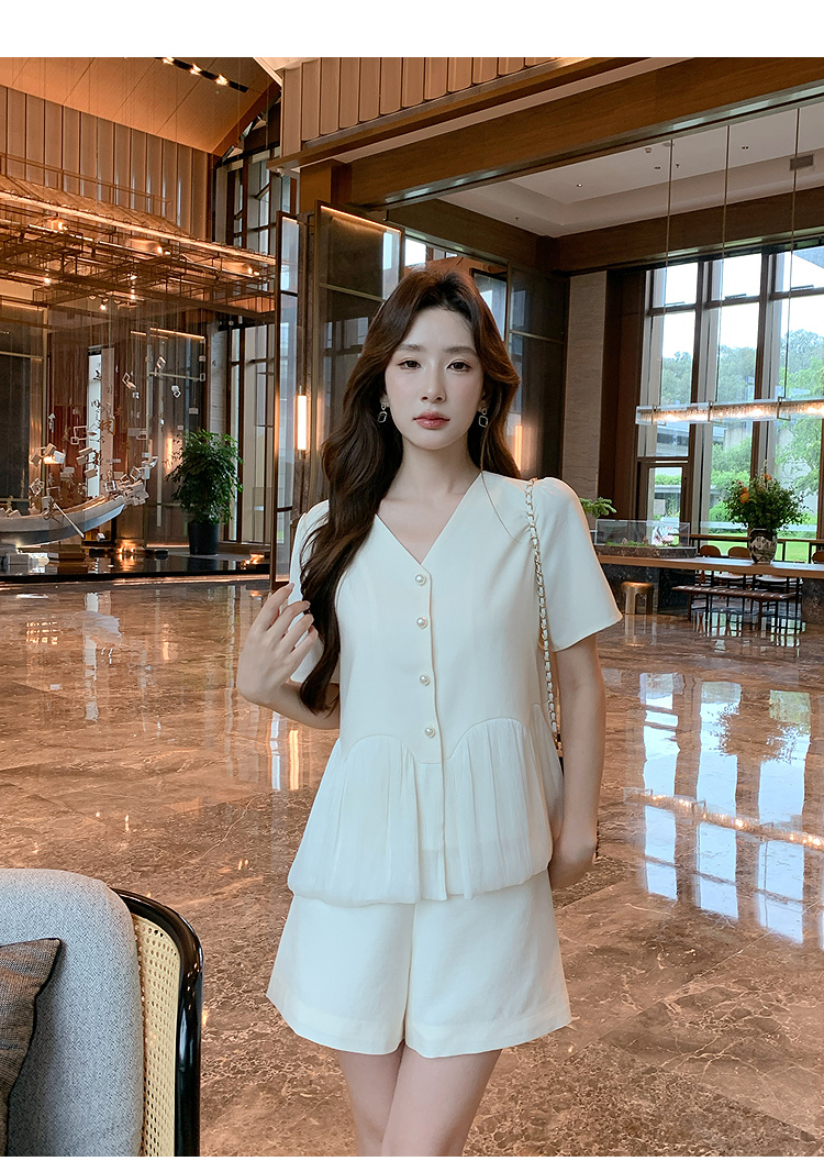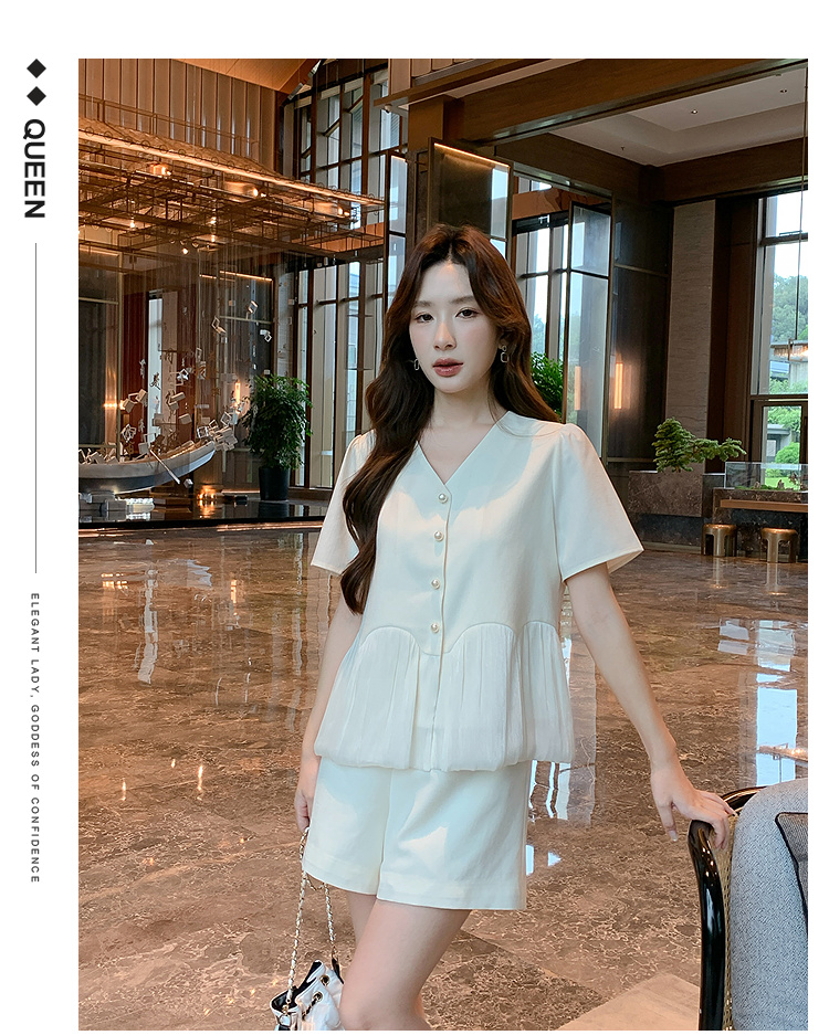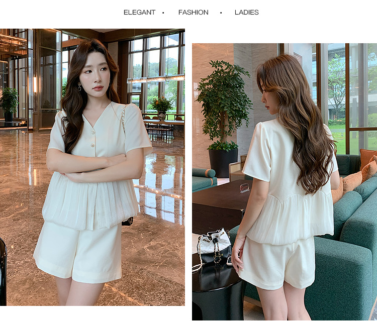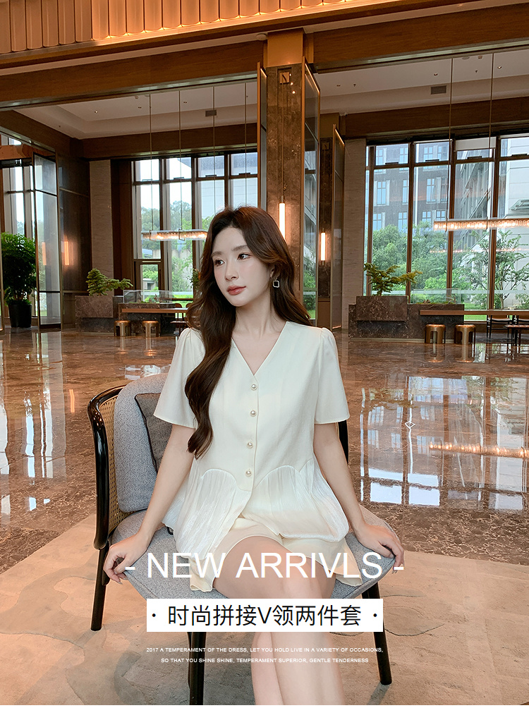 奢姿大码女装2025夏季减龄韩式V领两件套胖妹妹拼接时尚阔腿套装9952953545【1】