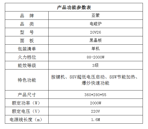 亚蒙 电磁炉 20V26 2000W 节能 爆炒