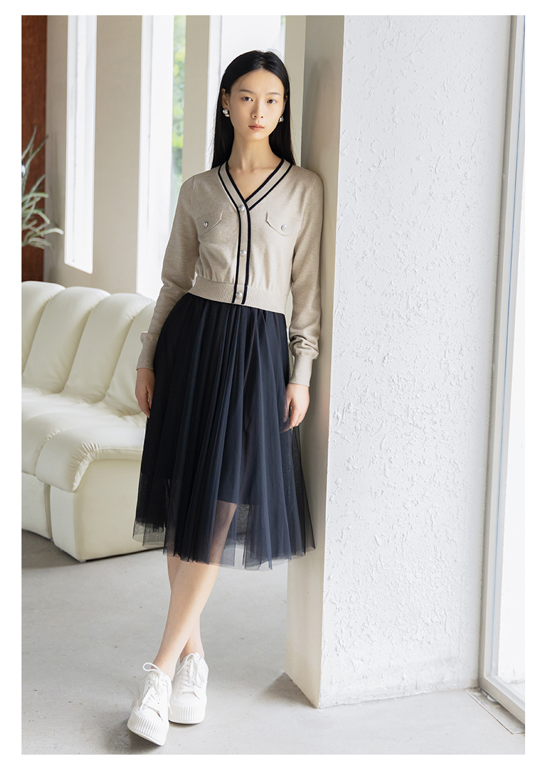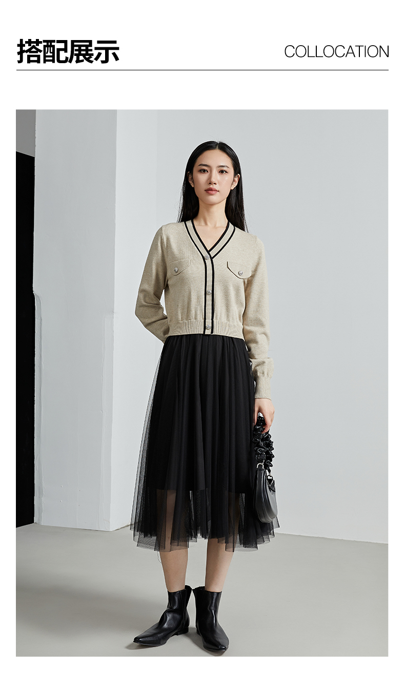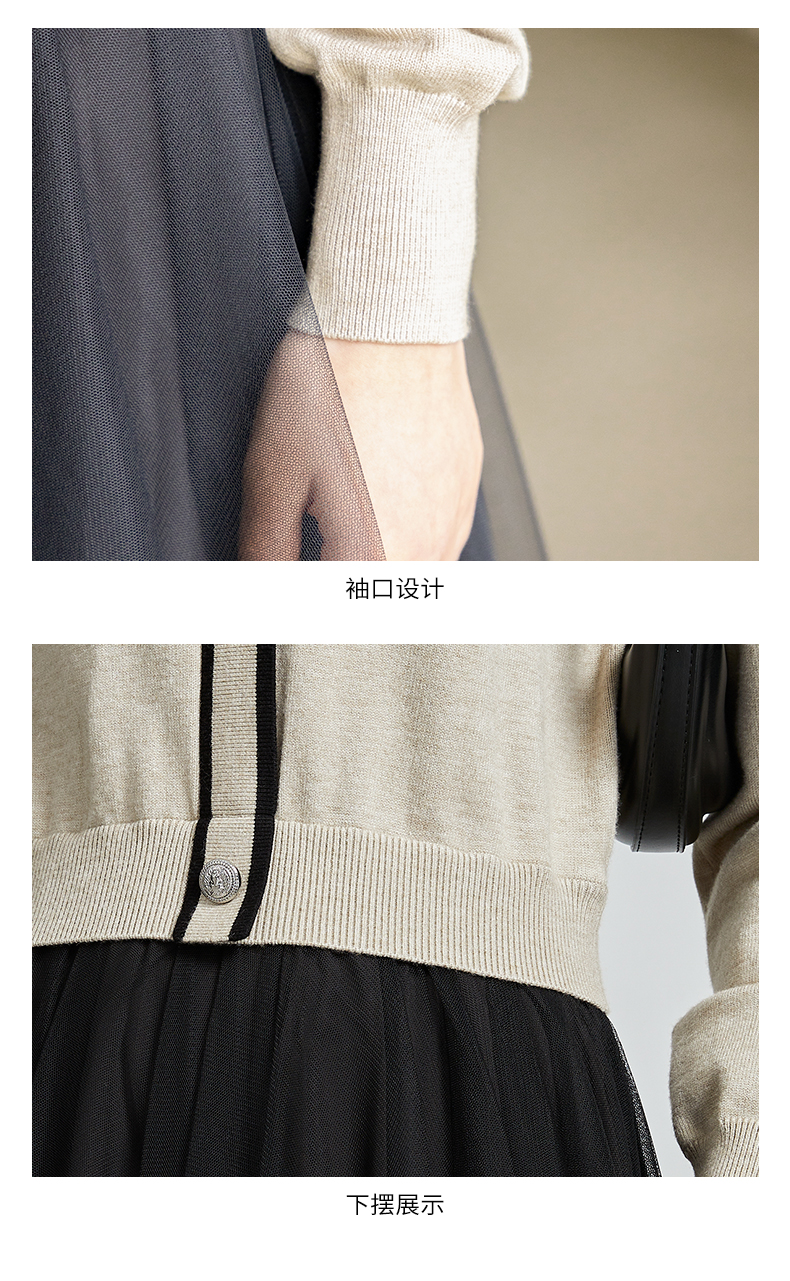 oldcolour2023春秋季新款假两件针织拼接连衣裙女气质网纱裙P341002A1