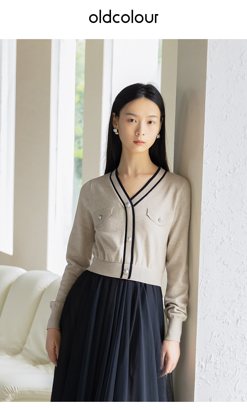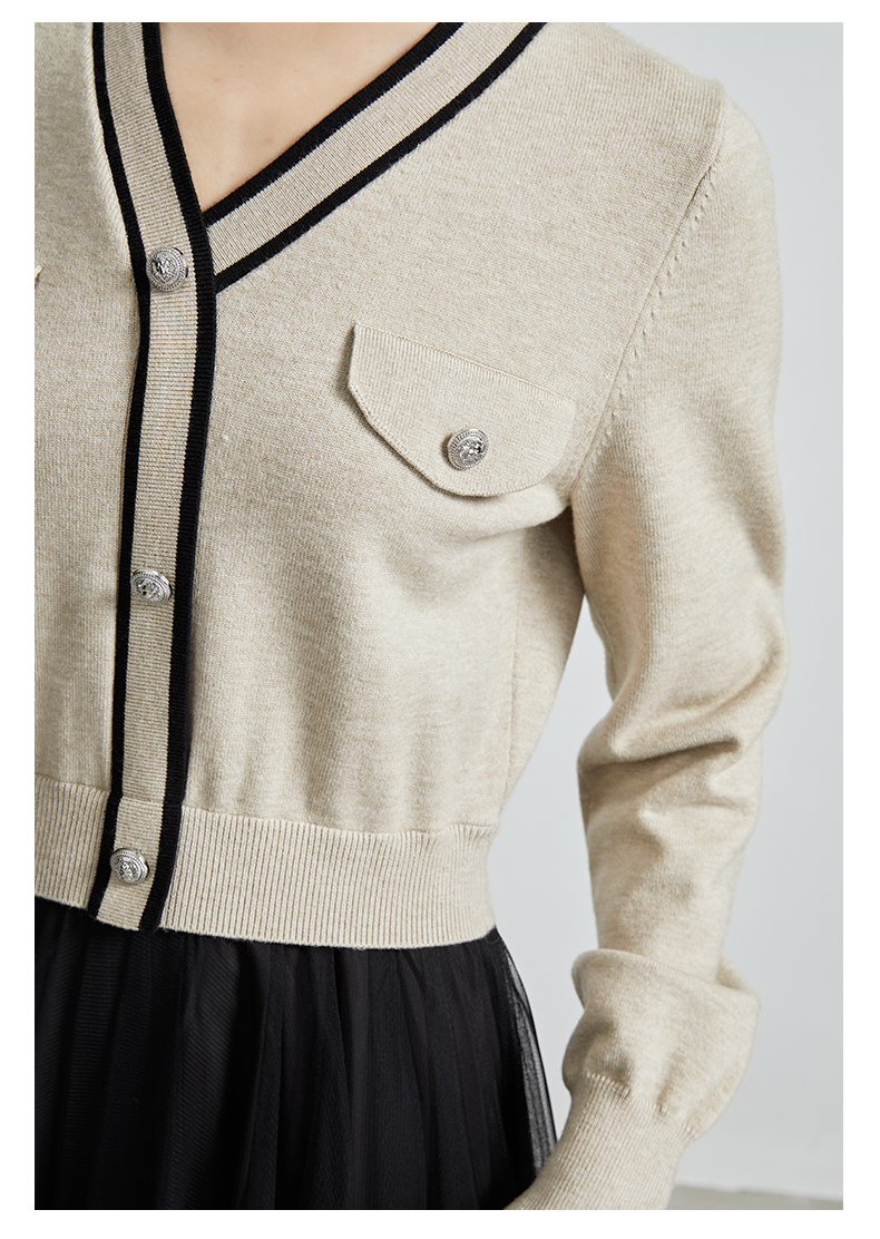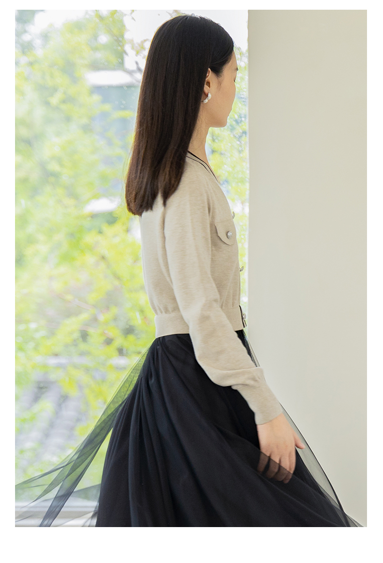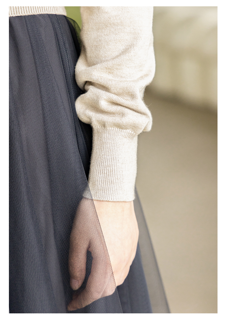 oldcolour2023春秋季新款假两件针织拼接连衣裙女气质网纱裙P341002A1