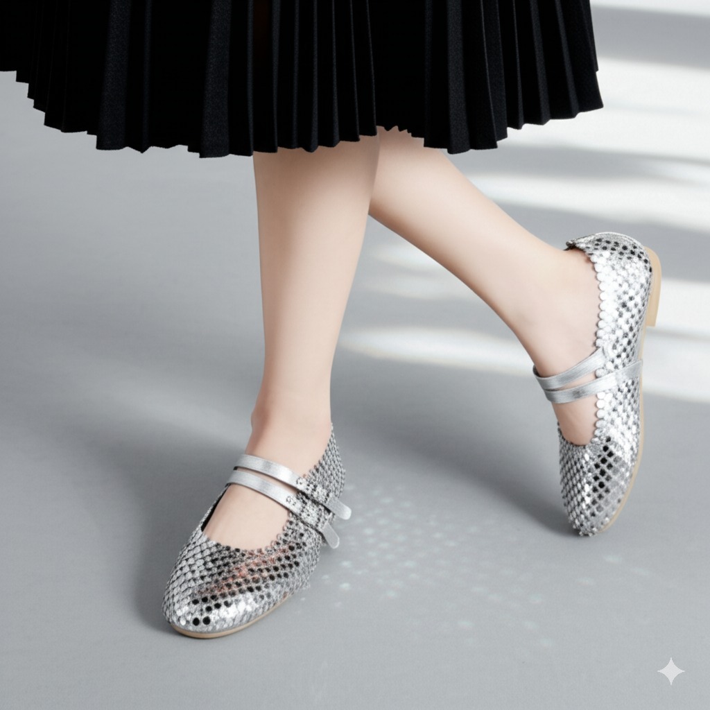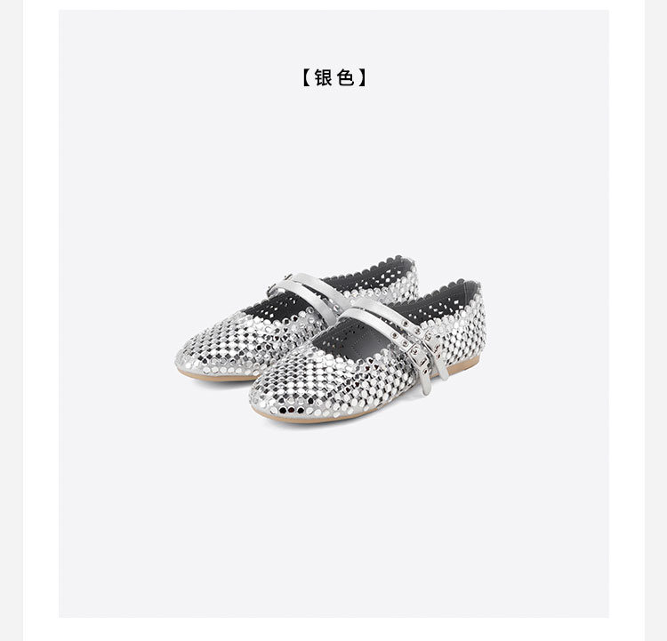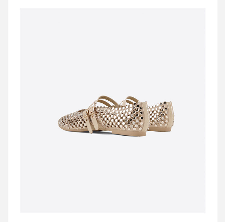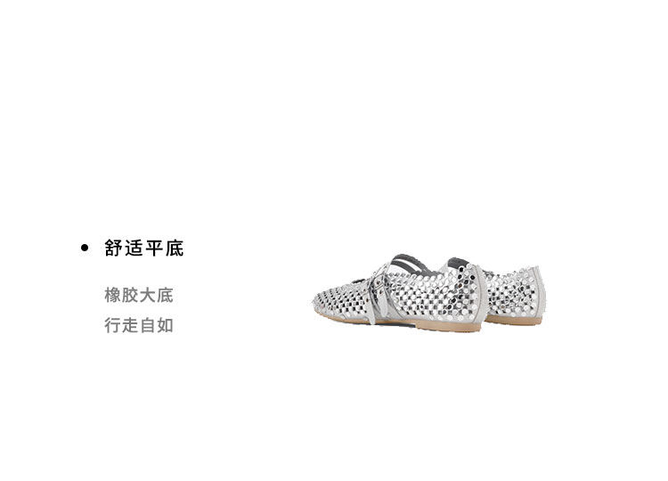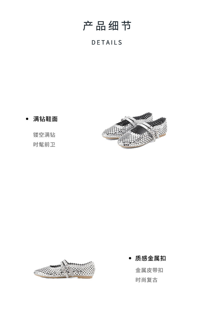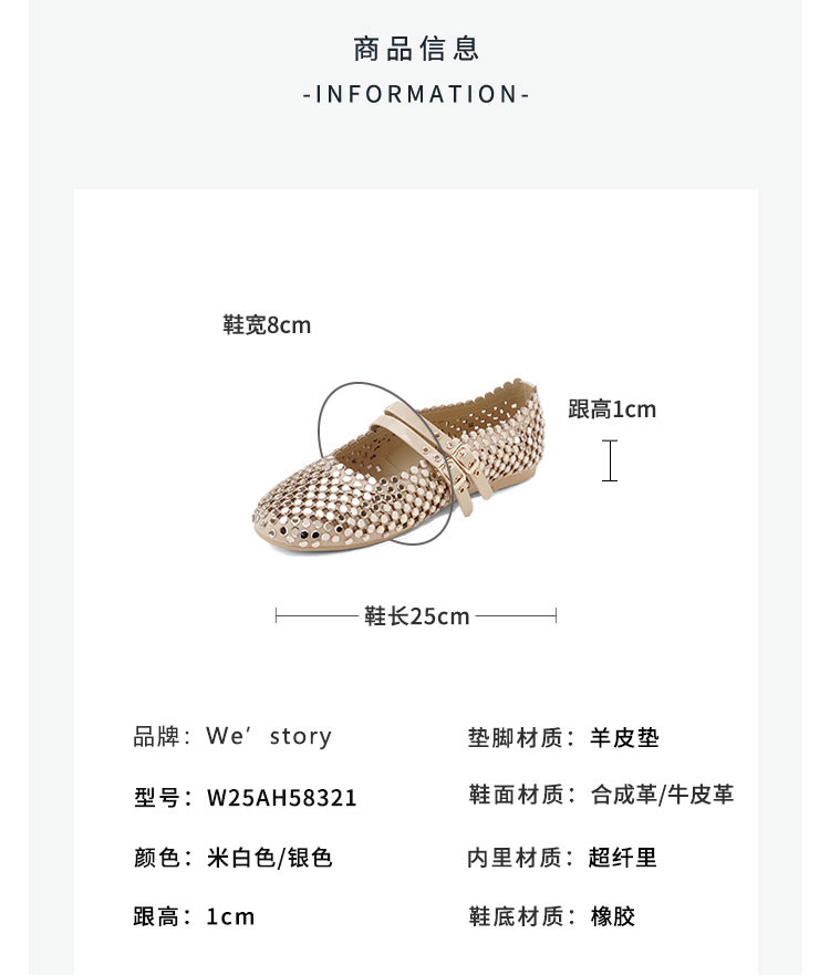 Westory2025年夏季冲孔镂空烫钻圆头平底单鞋空凉鞋W25AH58321