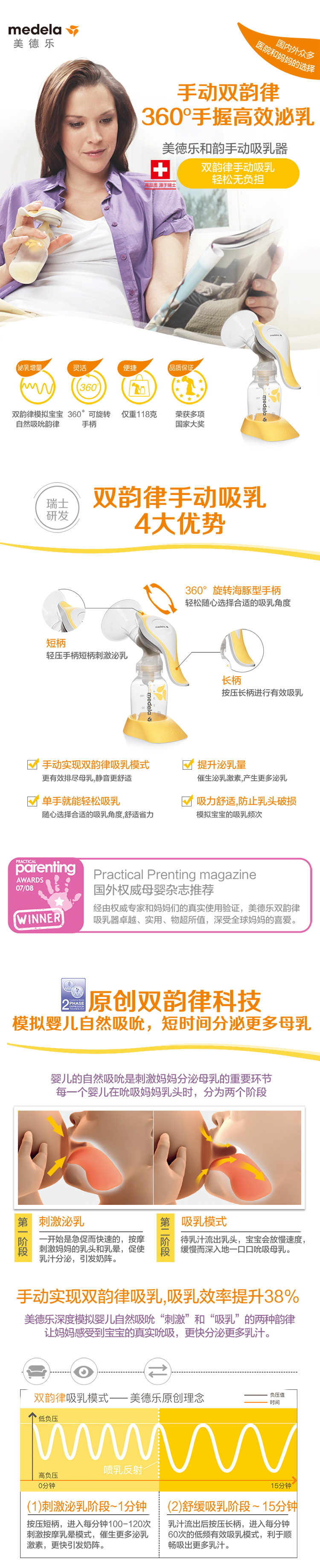 Medela美德乐吸奶器舒悦版和韵手动式便携新款产后挤奶器自在吸乳轻松行
