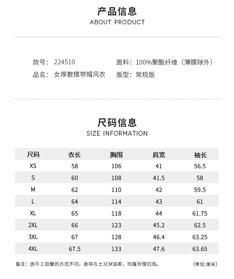 【拼接可脱节帽子】赛琪女士冬季拼接厚风衣224510