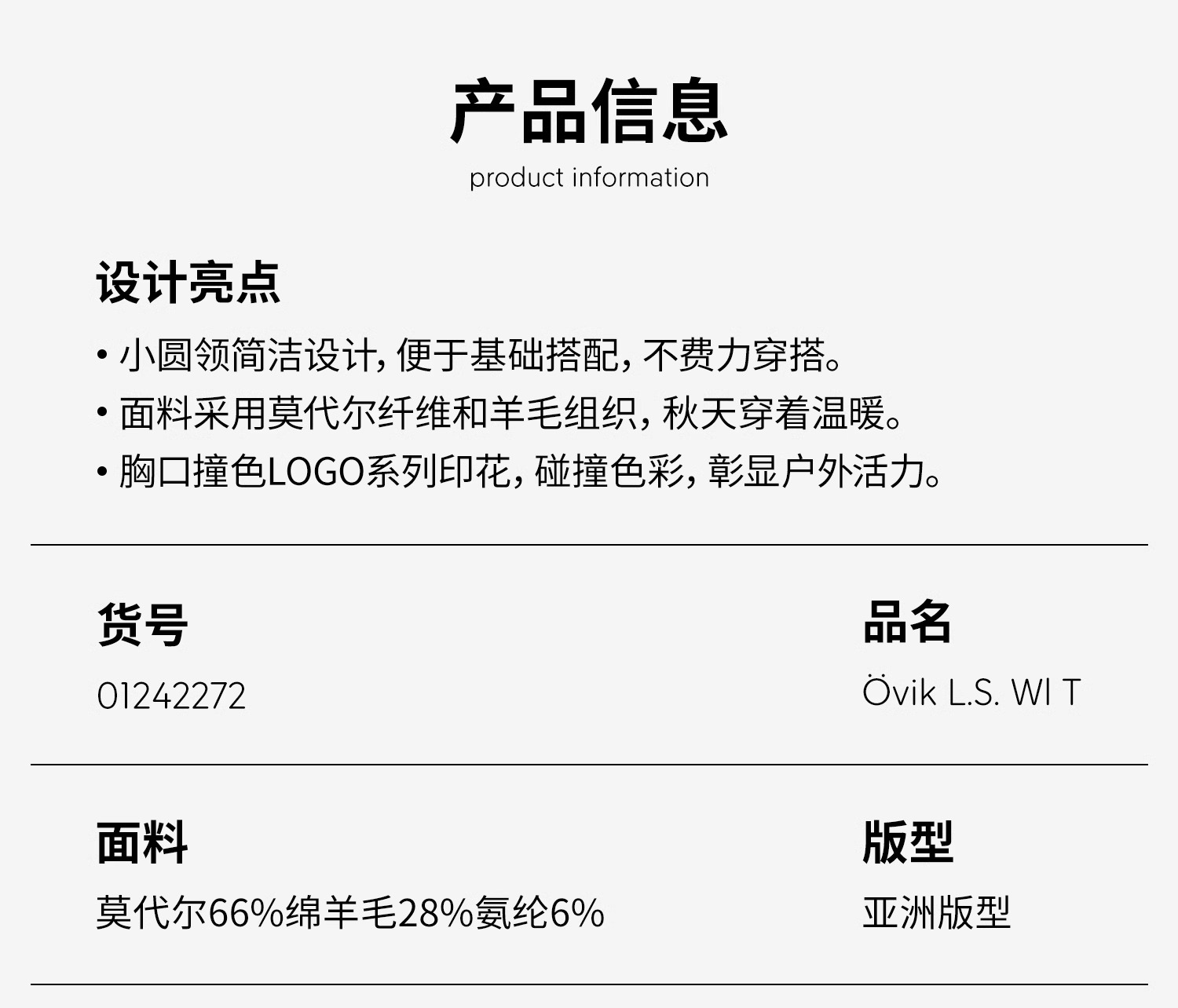 Fjallraven/北极狐女士圆领套头卫衣 2024秋冬新款羊毛保暖长袖01242272