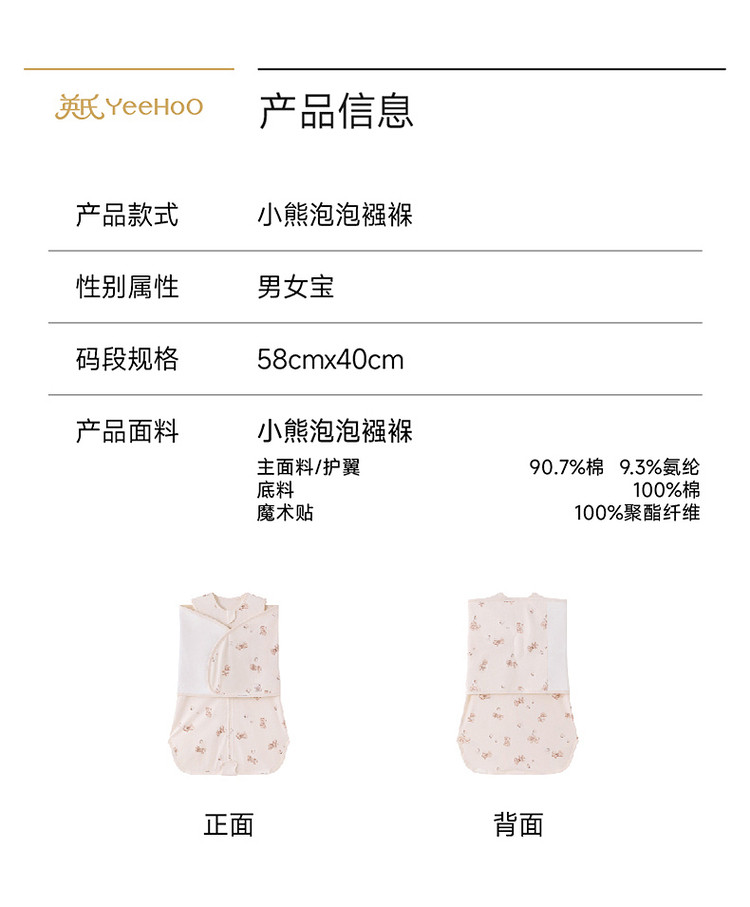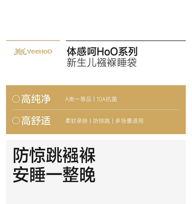 英氏婴儿睡袋宝宝10A抗菌一体防踢被四季通用小月龄YESQJ0S001A