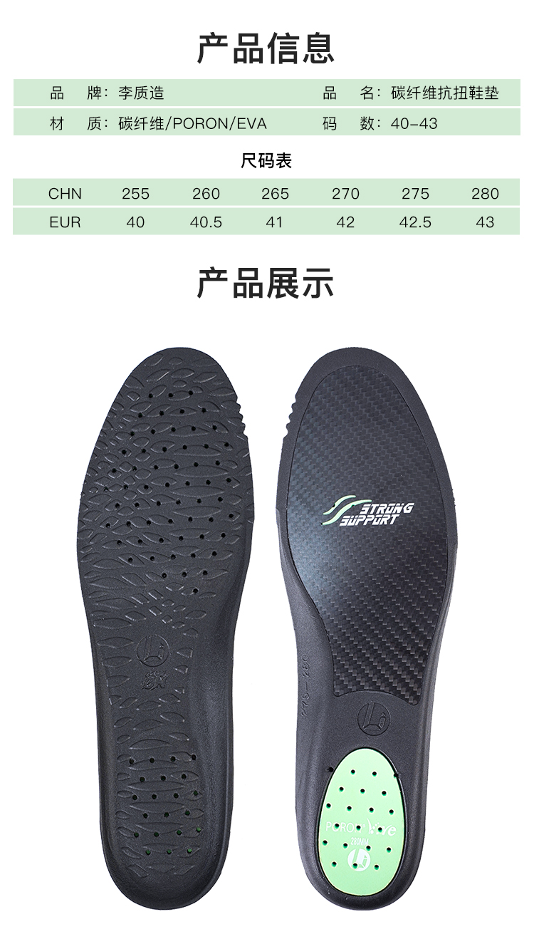 李质造 碳纤维运动缓震抗扭碳板鞋垫LZZTBXD001