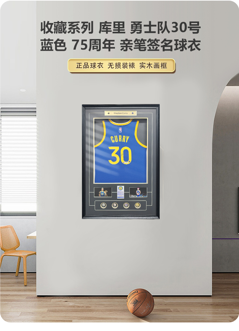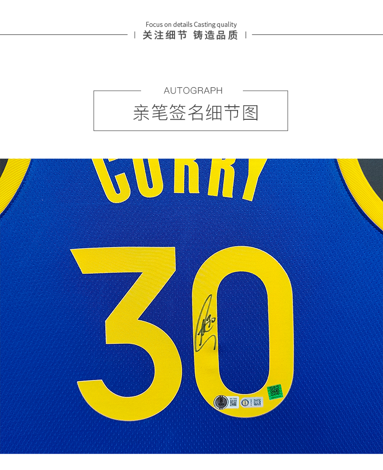 收藏系列 库里 勇士队30号蓝色 75周年 亲笔签名球衣