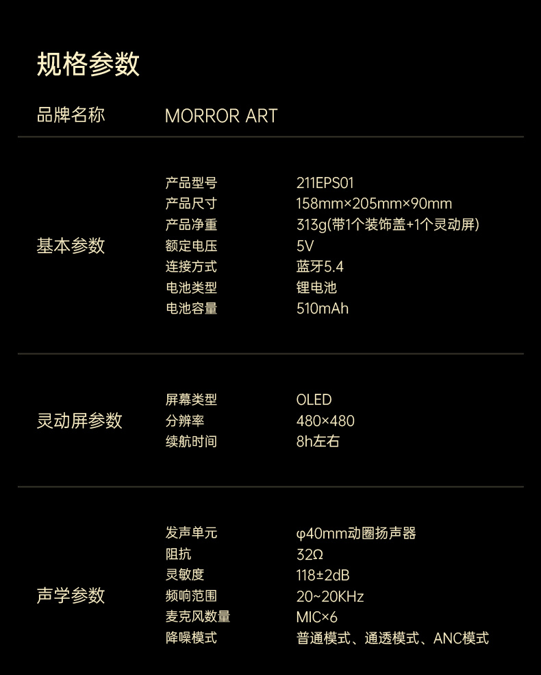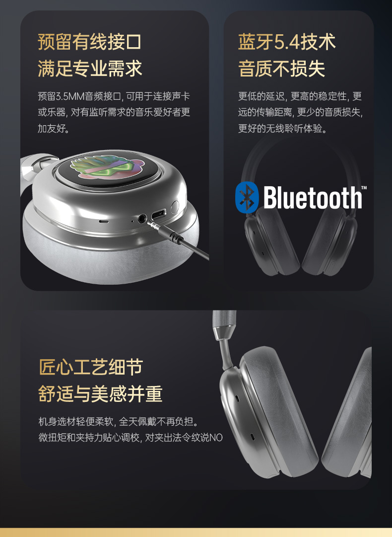MORROR ART VWS 显示蓝牙耳机 X1头戴式降噪耳机礼物送人男生女生生日礼物