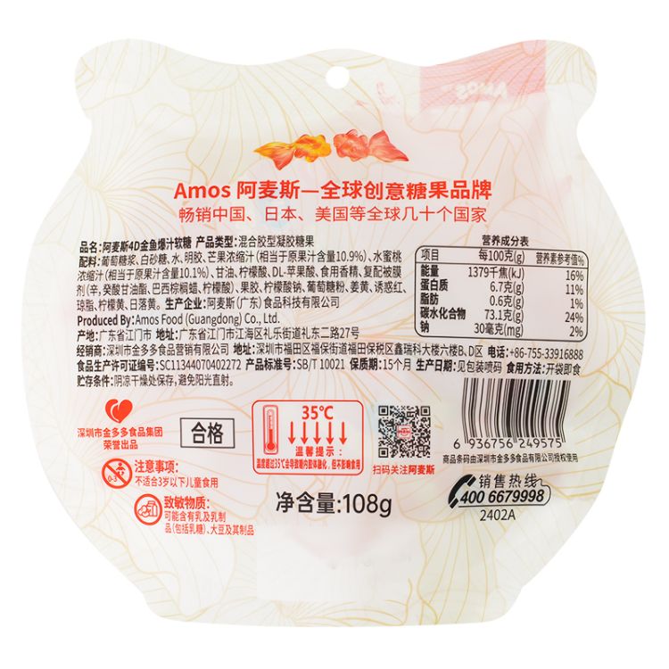 阿麦斯4D金鱼爆汁软糖108g