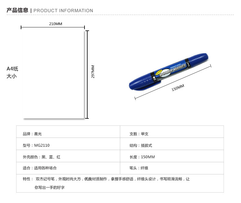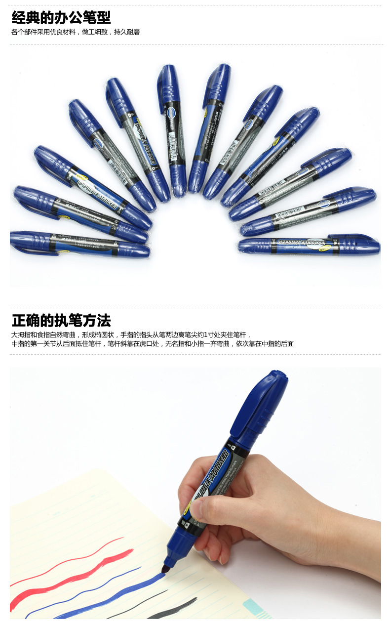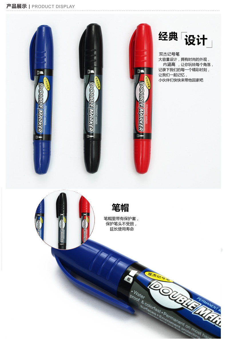 晨光记号笔双杰MG2110双头大支记号笔 红蓝黑三色