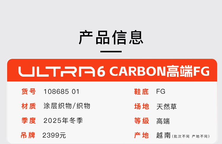 小李子PUMA彪马ULTRA 6高端FG长钉比赛训练足球鞋成人男108685 01