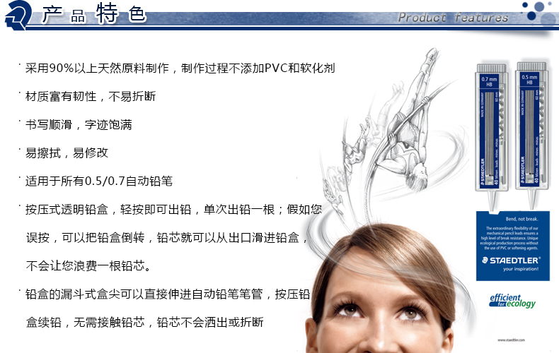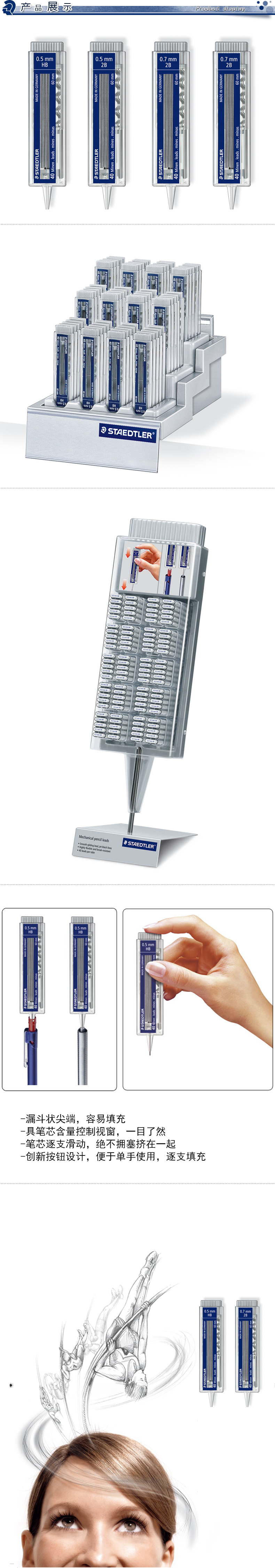 施德楼铁甲武士自动铅笔芯25507办公学生考试学习用品绘画