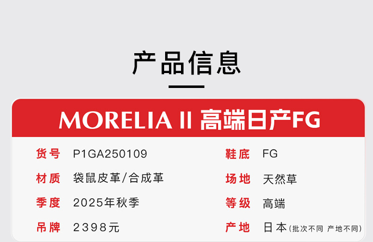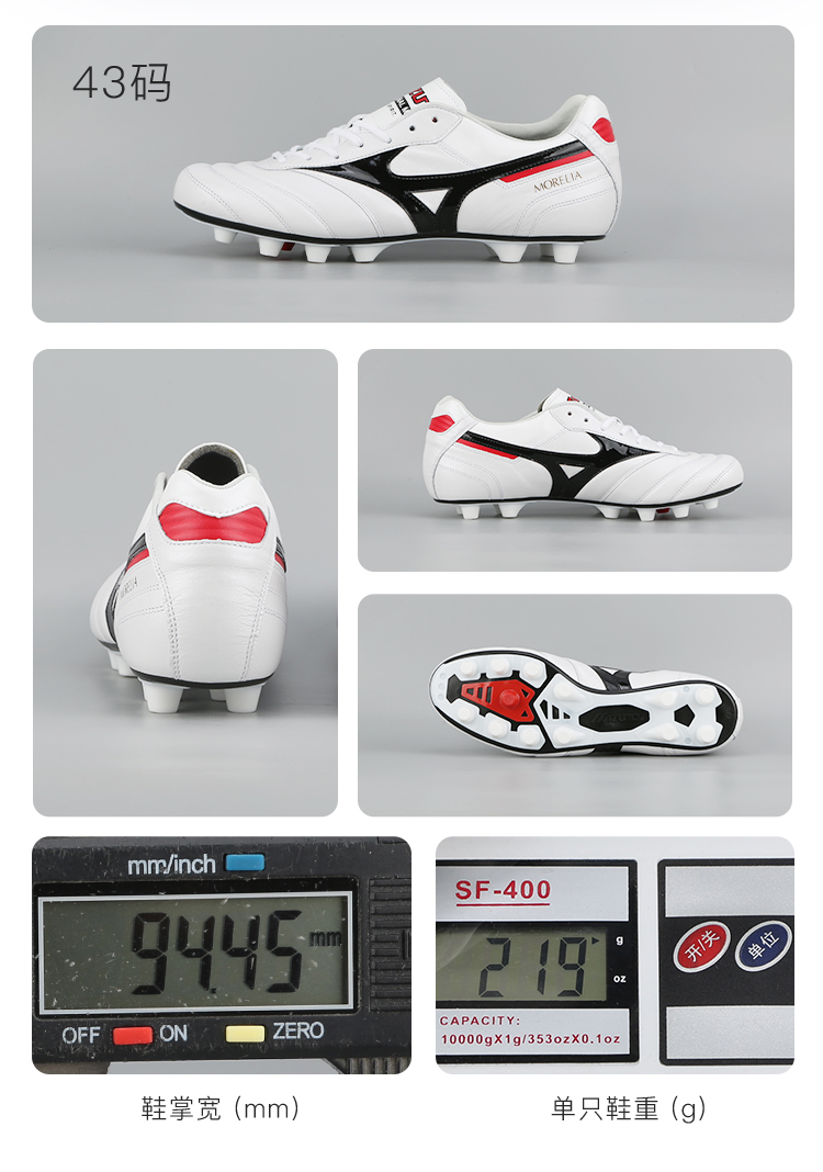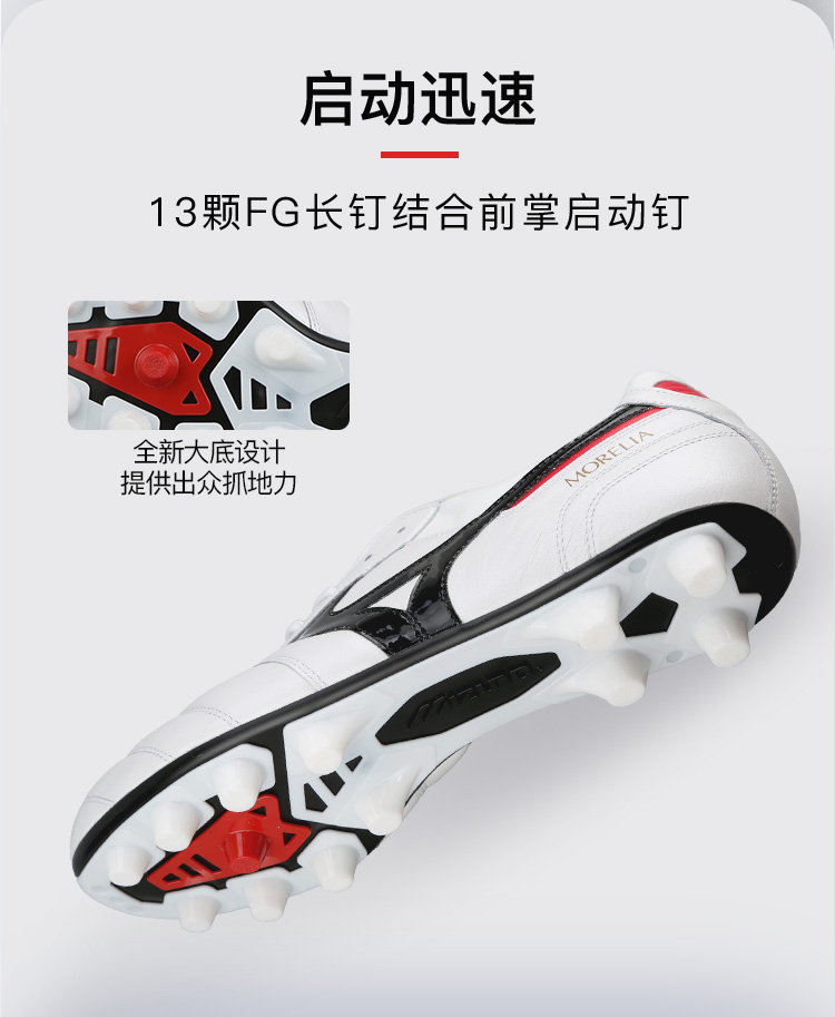 小李子美津浓莫雷拉MORELIA 2高端日产FG长钉袋鼠皮足球鞋成人男