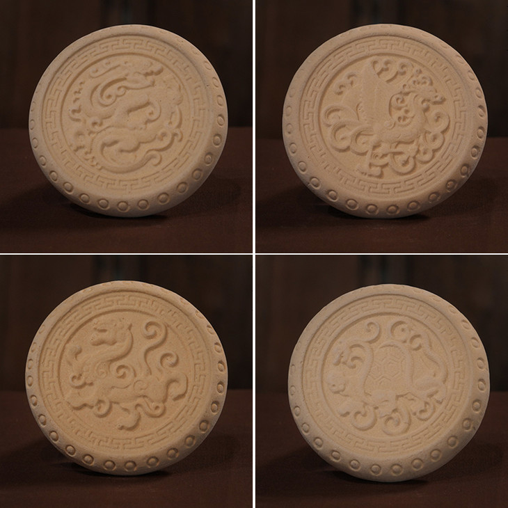 值得一提的是,这四神兽壶承系列,设计灵感源于汉代瓦当的四灵兽:青龙、白虎、朱雀、玄武。