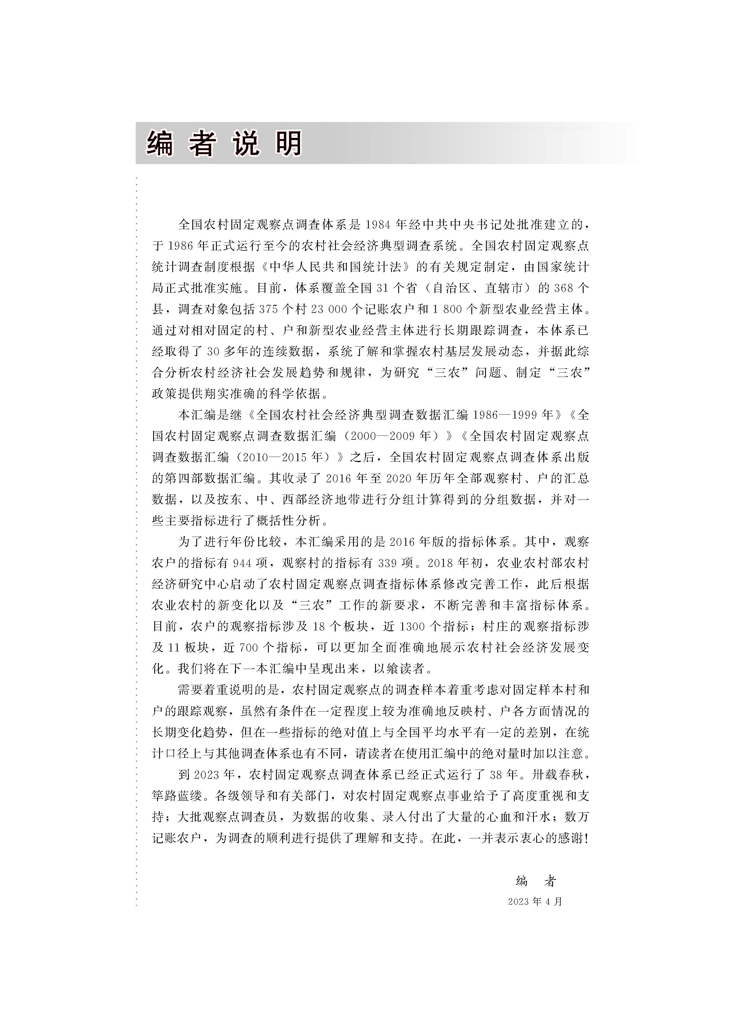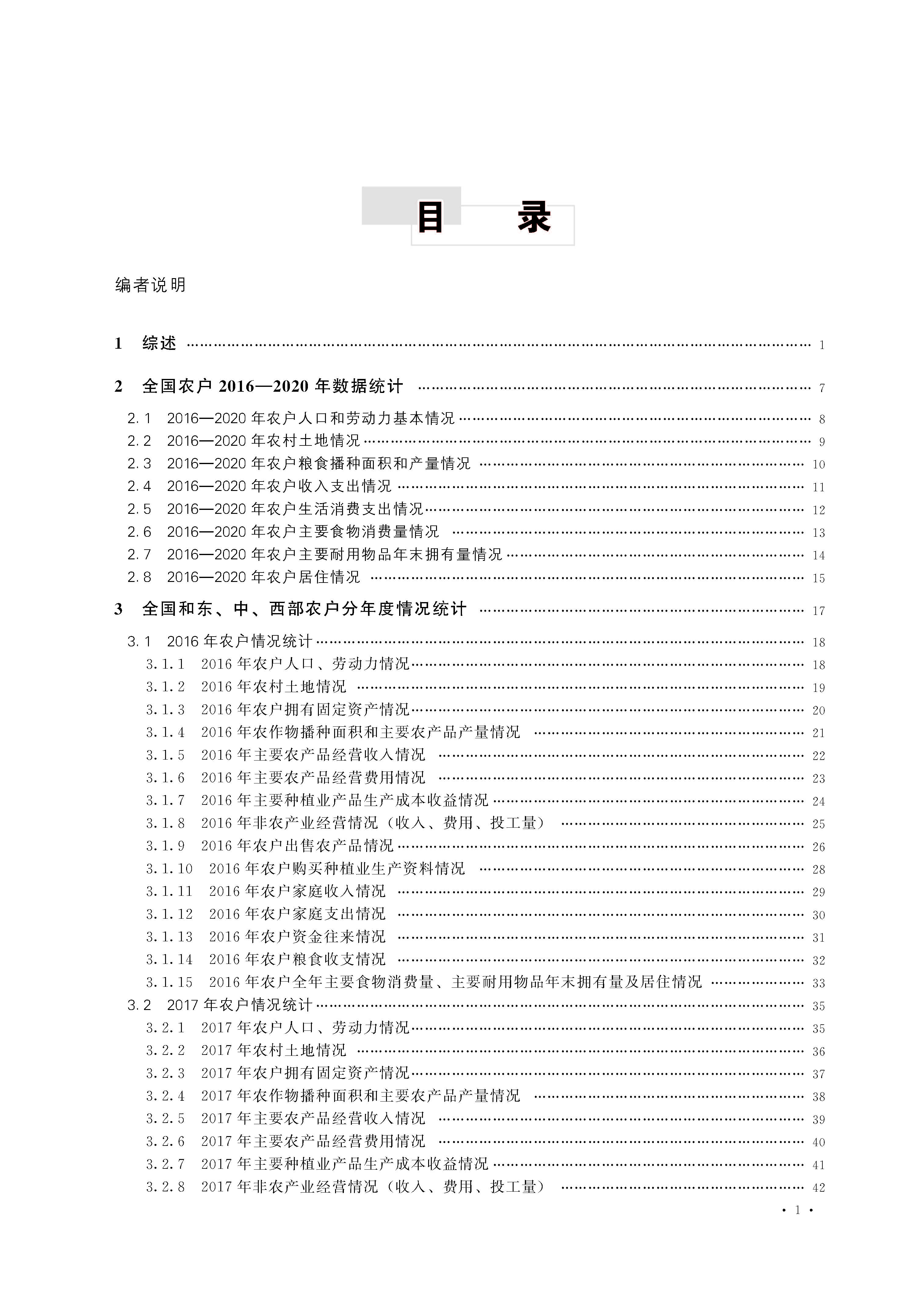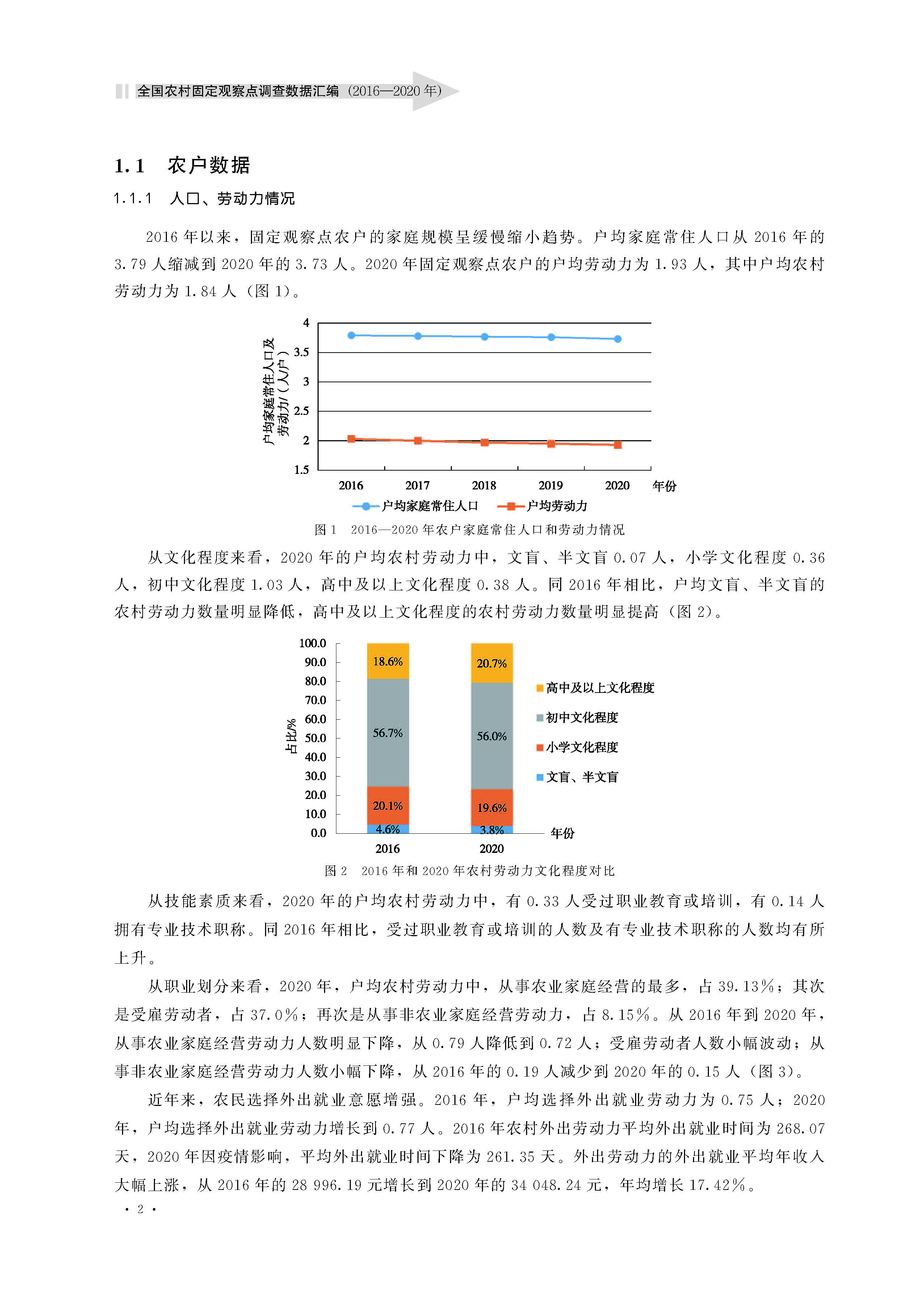 全国农村固定观察点调查数据汇编(2016-2020年)