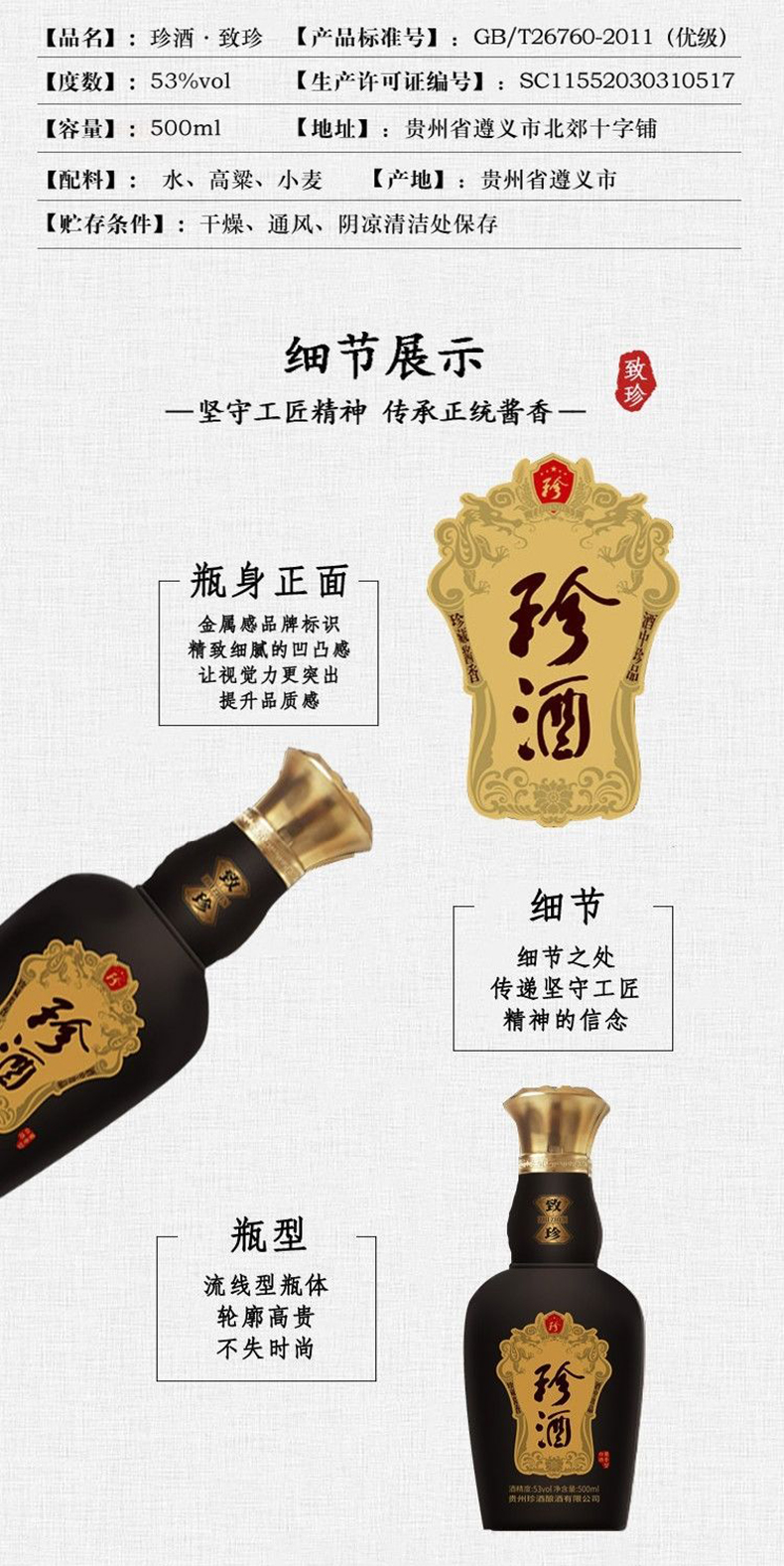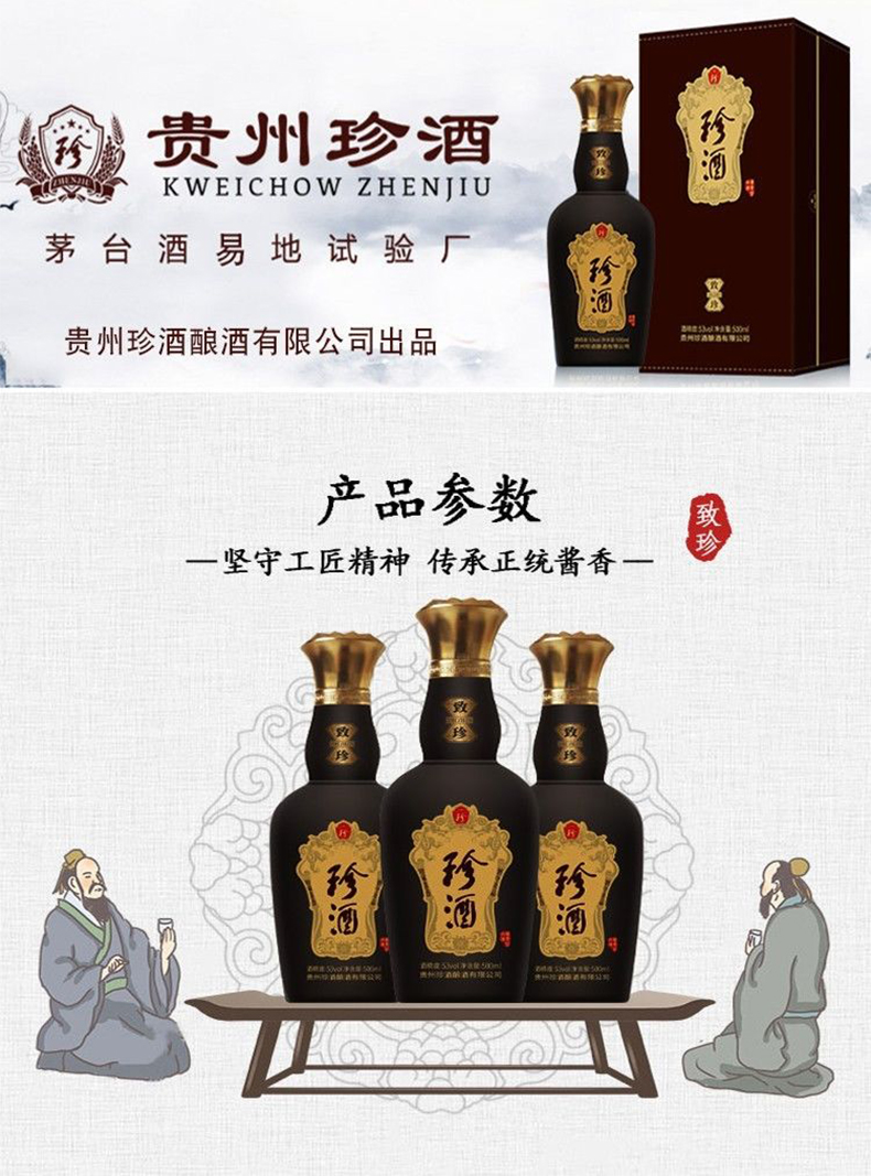 珍酒致珍酒 53度酱香型白酒 整箱6瓶*500ml包邮