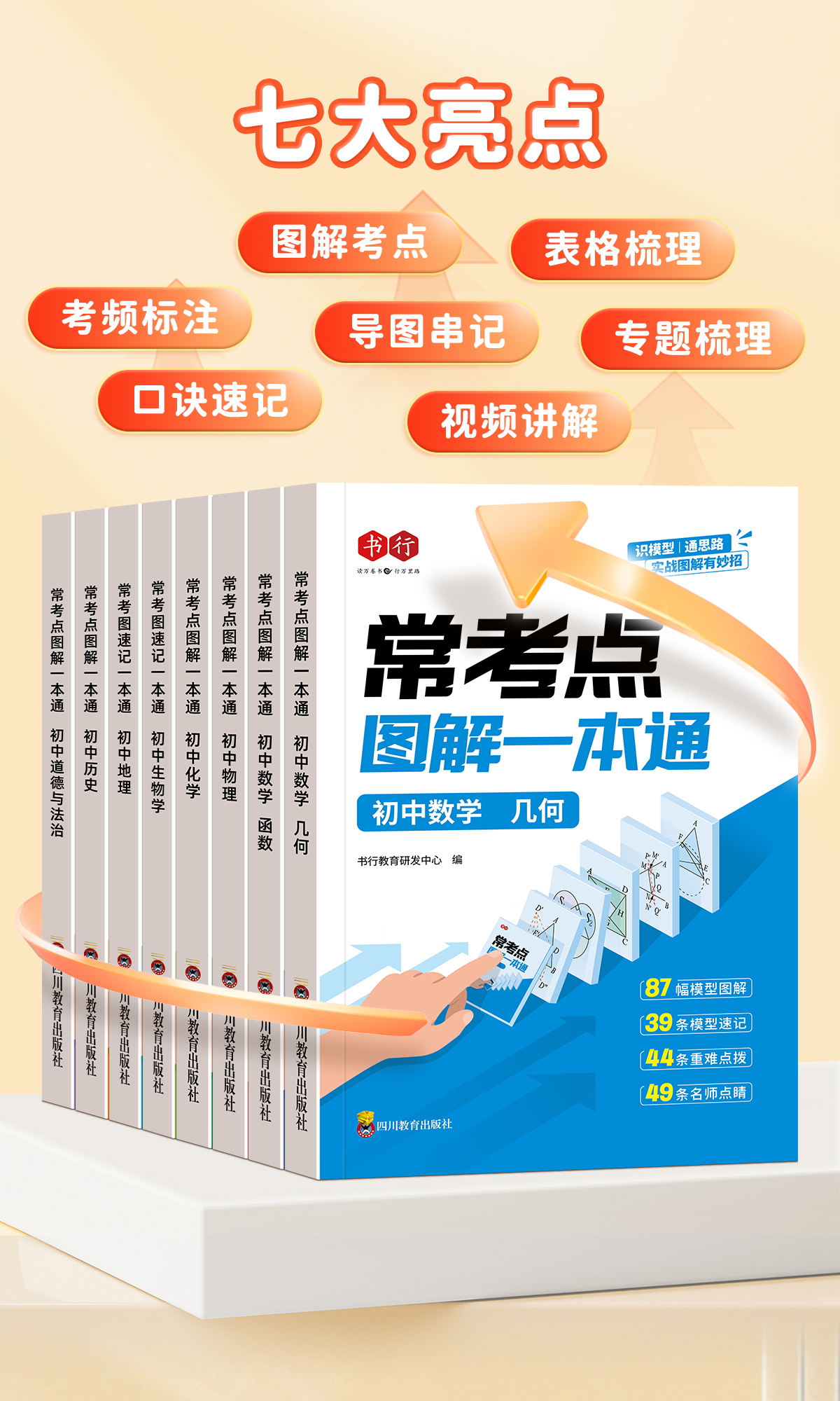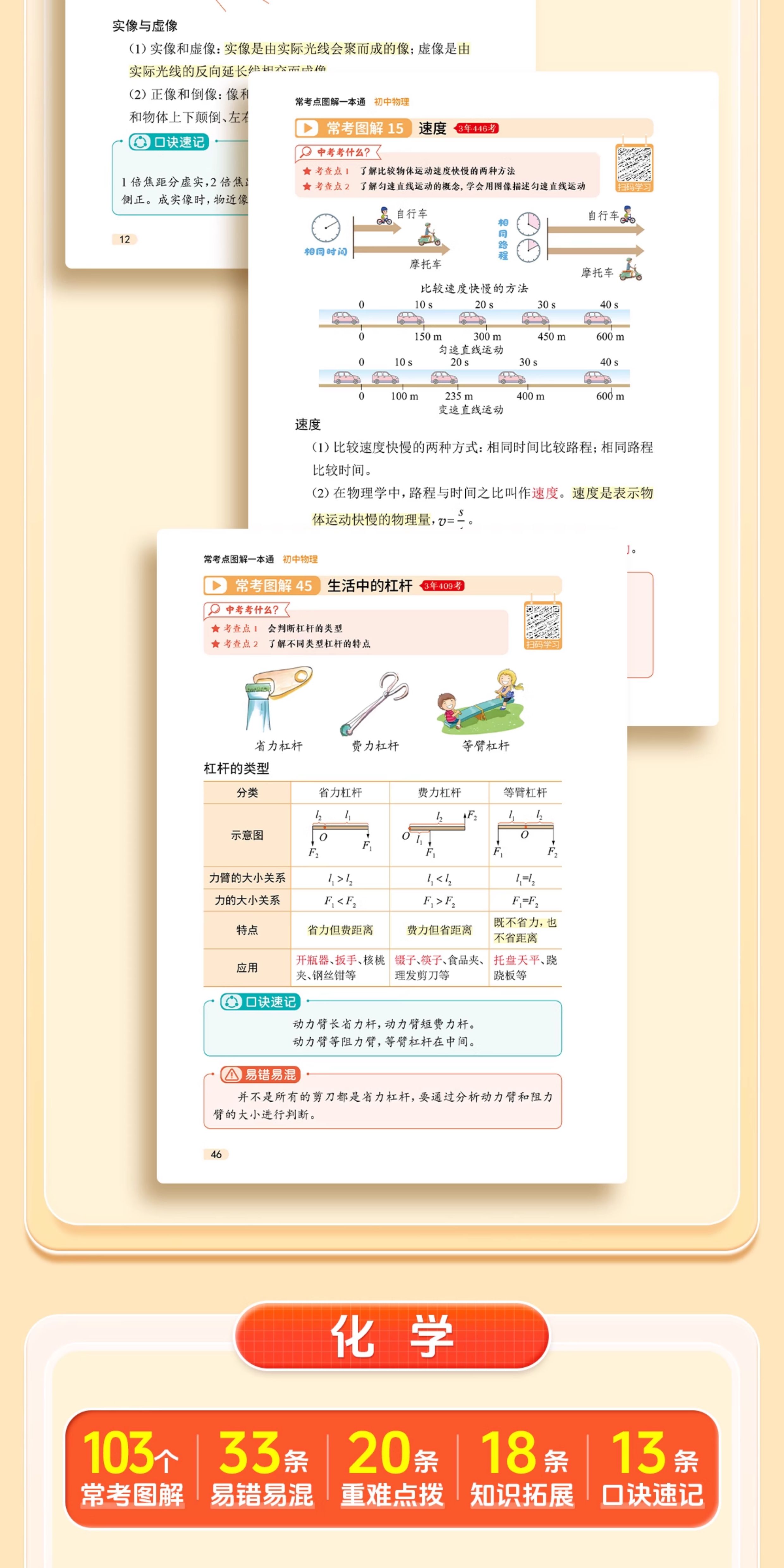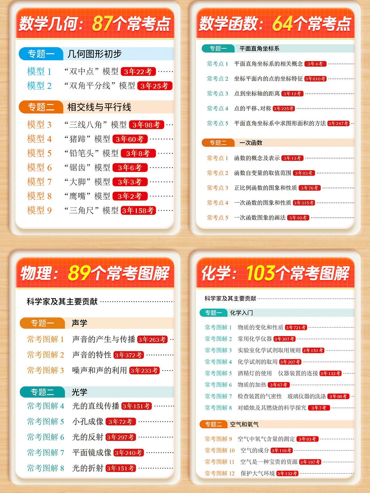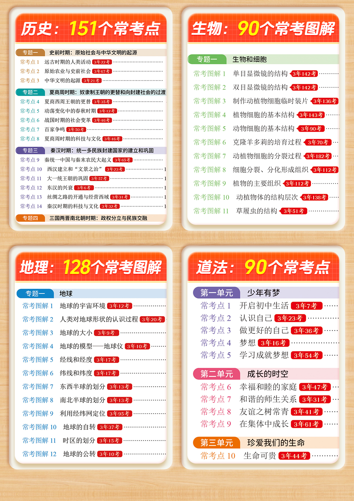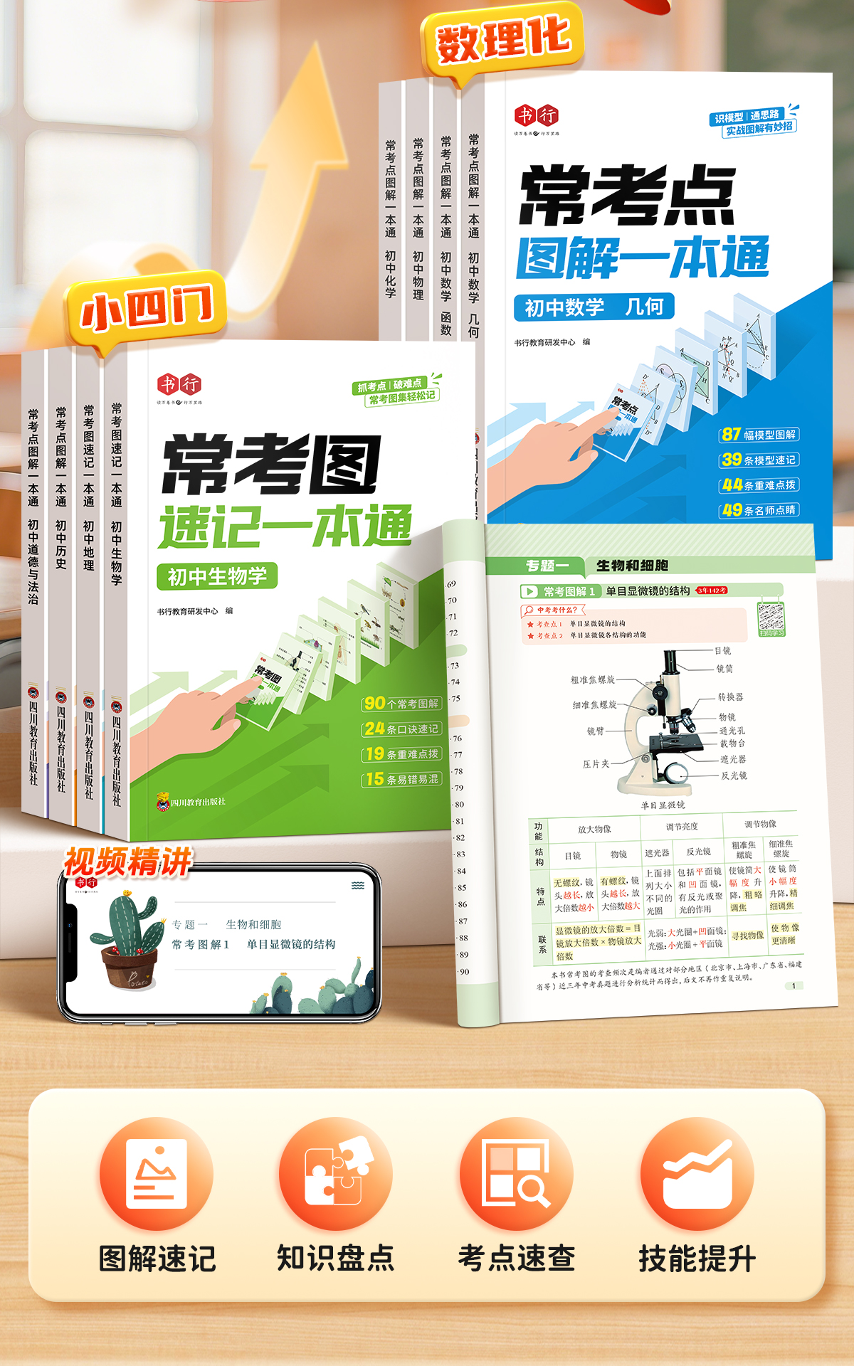 初中数理化小四门常考点【图解+速记】一本通中考必备数学函数几何物理化学生物历史地理道德与法治考点口诀速记指导教材书